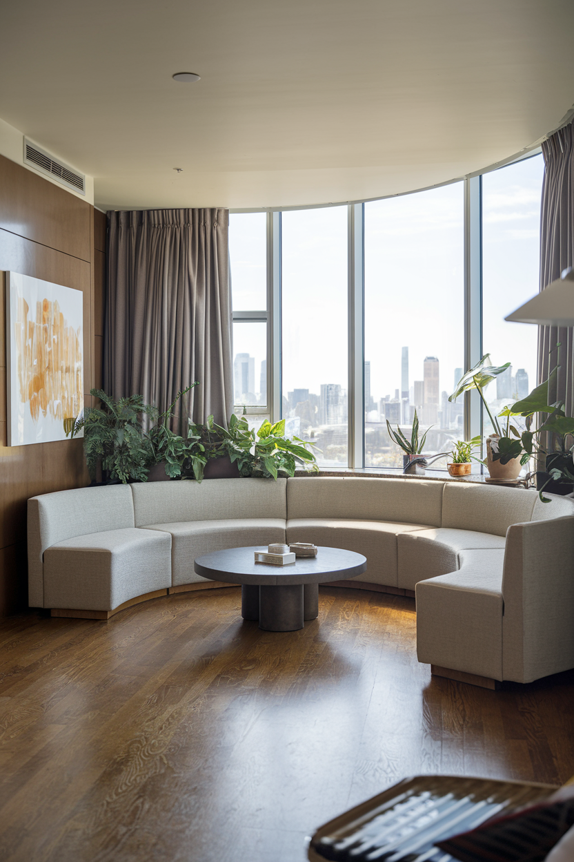 Curved sofas are a standout choice for those looking to add visual interest and flow to their living space. Their soft, rounded edges make them a beautiful contrast to angular furniture, creating a more inviting and harmonious feel. Whether you choose a large, sweeping curve for a dramatic effect or a small, curved sectional for a cozy nook, this style draws people together and creates a natural, easy-flowing conversation area. Perfect for open-plan living rooms, curved sofas bring a touch of elegance and warmth to any setting.