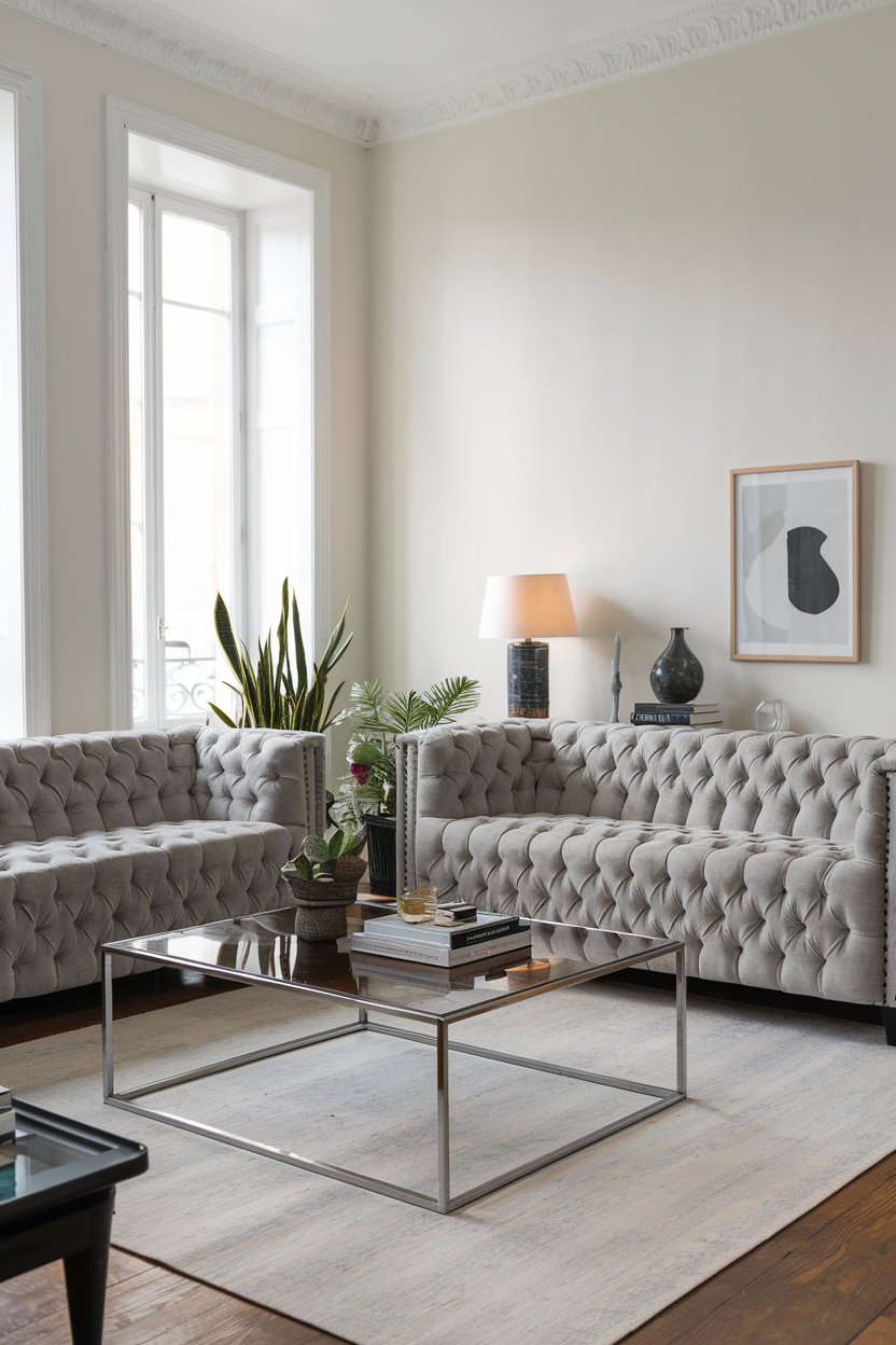 Chesterfield sofas exude timeless elegance with their deep button tufting, rolled arms, and luxurious leather or plush fabric upholstery. This style is perfect for anyone looking to add a sophisticated, vintage touch to their living room. The distinctive design of a Chesterfield sofa lends an air of formality to traditional spaces while adding a rich texture and refined look. Available in a variety of rich hues like deep brown, navy, or even velvet, this couch type can be paired with both classic and contemporary furniture for a high-end aesthetic.
