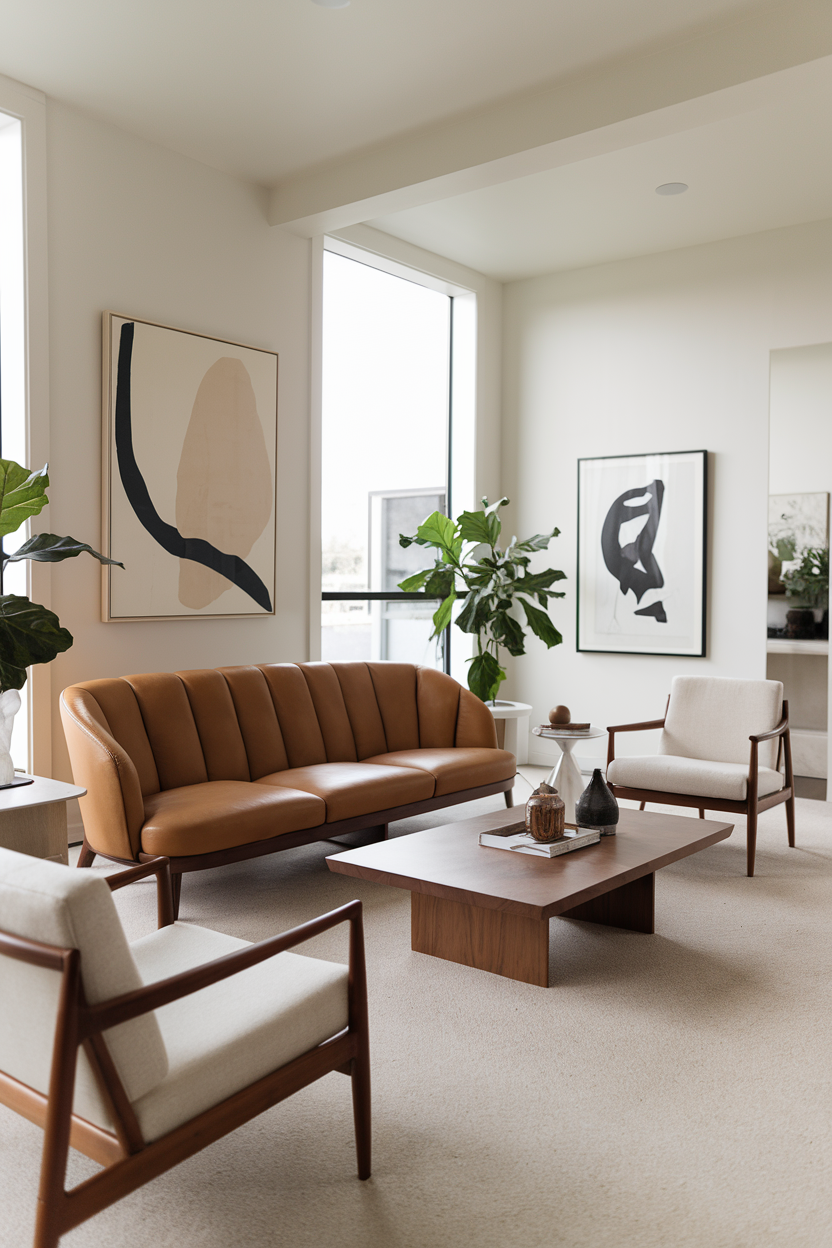 Mid-century modern couches are timeless classics that embody clean lines, wooden legs, and simple yet functional designs. With their minimalist aesthetic, these sofas offer a blend of retro charm and contemporary appeal. Opt for neutral-toned fabrics such as mustard, navy, or charcoal to capture an authentic mid-century vibe, or choose bold colors to make a statement. This style works well in minimalist, eclectic, or even Scandinavian interiors, offering a stylish and functional seating option that enhances your living room’s overall ambiance.