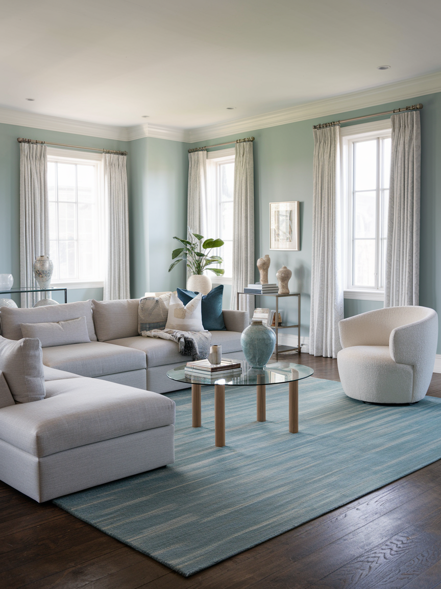 Seafoam green offers a soft blend of blue and green tones that feels refreshing and tranquil. It brightens a space while maintaining a peaceful atmosphere. Paired with sandy neutrals and crisp white trim, it creates a coastal-inspired look that feels breezy and relaxed. This shade is especially effective in smaller rooms, where its lightness prevents the space from feeling cramped. The overall effect is airy, rejuvenating, and effortlessly calming.