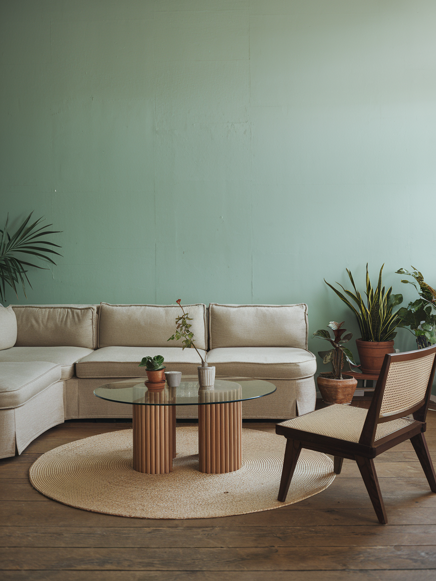 Soft mint brings a gentle burst of freshness to your living room. Its light, greenish hue reflects natural light beautifully, making the space feel open and rejuvenating. Mint pairs effortlessly with white trim, pale wood furniture, and woven textures for a relaxed, breezy aesthetic. It’s particularly effective in smaller spaces that need a visual lift, as the color prevents the room from feeling confined. Add subtle pops of natural textures, like linen pillows or a jute rug, to enhance the organic feel. Soft mint creates an uplifting yet calm environment that feels cheerful without overwhelming the senses.