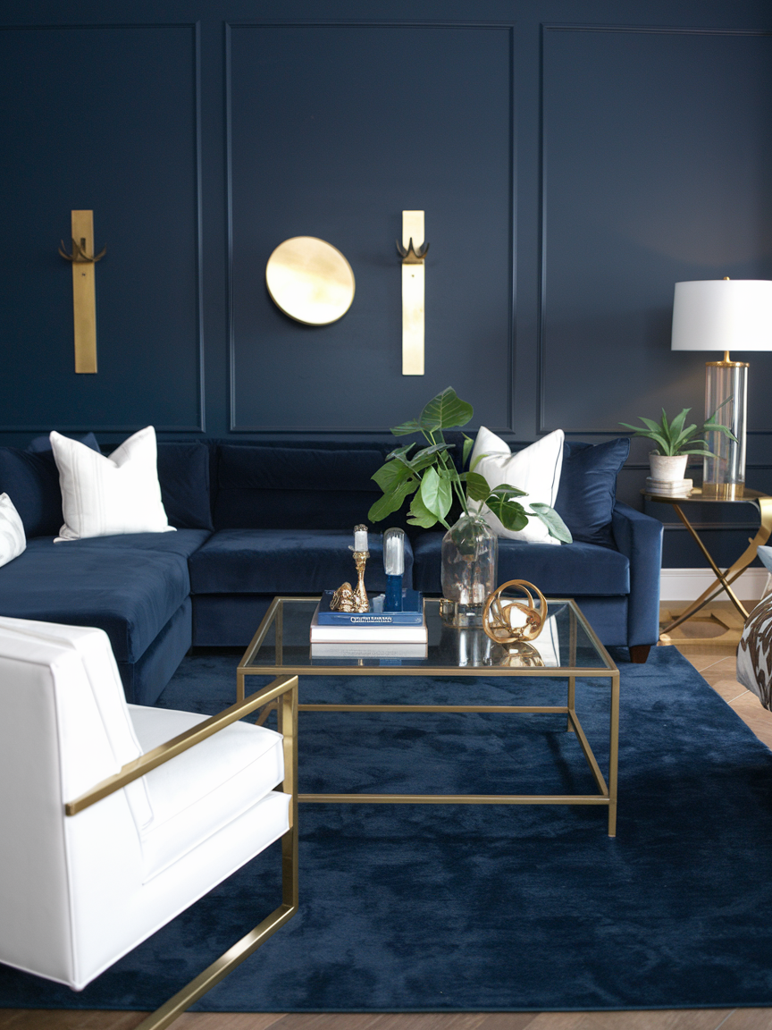 Deep navy instantly elevates a living room, giving it that polished, designer-inspired look. It creates a rich, cocoon-like atmosphere that feels both dramatic and comforting, especially in the evenings when the lights are dimmed. This shade pairs beautifully with gold accents, brass fixtures, crisp white trim, or even bold patterned textiles that stand out against the darker background. To prevent the room from feeling too heavy, balance navy walls with warm wood furniture or lighter upholstery. The depth of this color adds visual interest and makes artwork and décor pop, creating a space that feels intentional and refined. It’s bold without being overwhelming, offering sophistication that still feels livable and inviting.