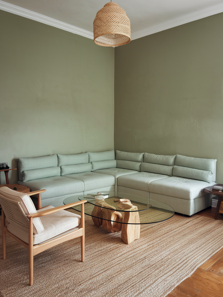 Sage green brings a soothing, organic energy into your living room. Its muted tone evokes the calm of nature, making the space feel fresh yet grounded. This color works exceptionally well with earthy materials such as rattan chairs, jute rugs, wooden coffee tables, and terracotta planters. Incorporating greenery—real or faux—enhances the calming atmosphere and ties the whole look together. Sage green is subtle enough to act as a neutral but still provides more personality than standard beige or gray. It creates a peaceful environment perfect for unwinding after a long day, reading a book, or enjoying a quiet conversation. The overall effect is serene, timeless, and beautifully balanced.