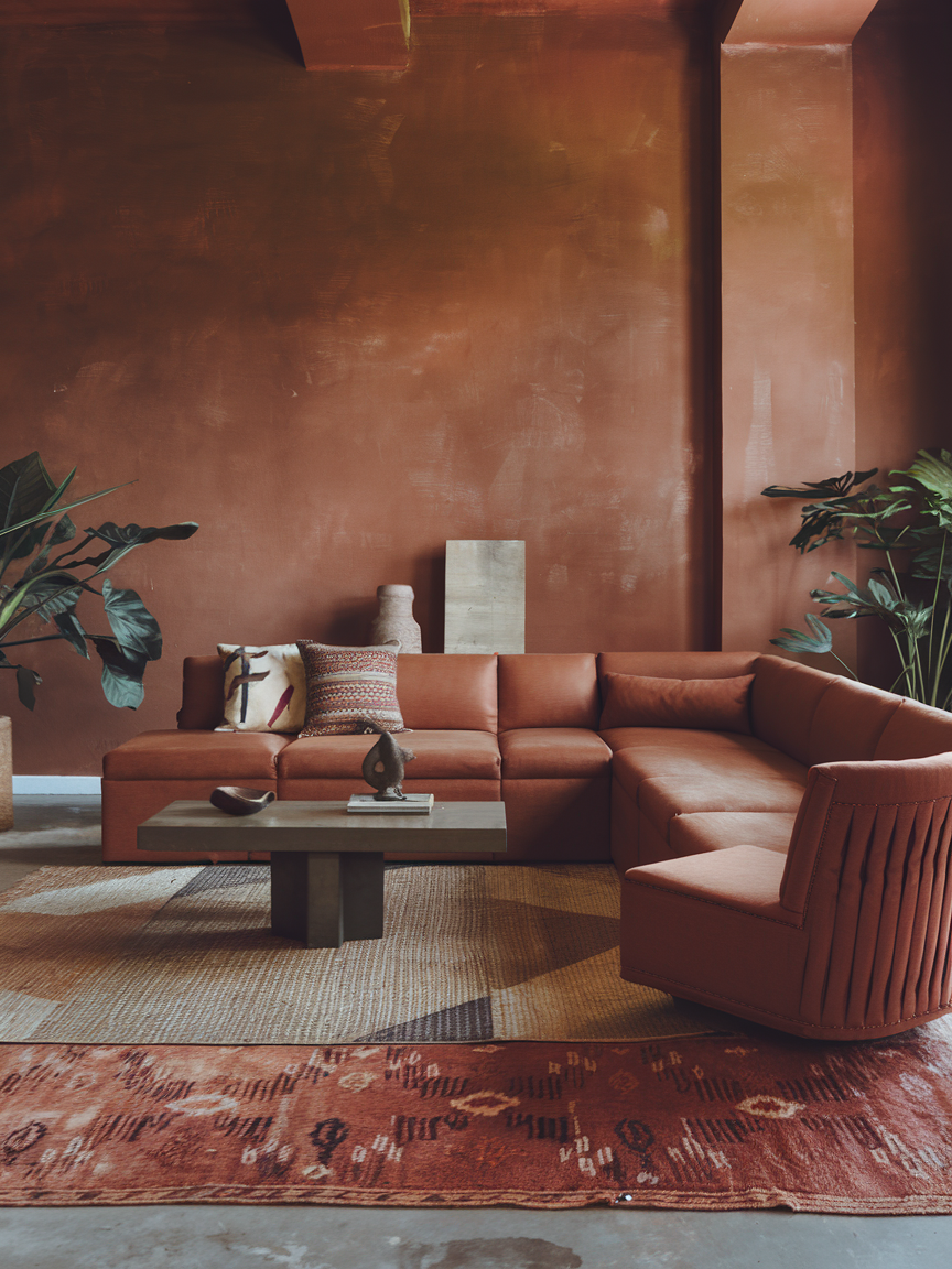 Terracotta infuses your living room with warmth and character that feels both rustic and stylish. This earthy hue creates a welcoming glow that instantly makes the space feel lived-in and cozy. It pairs wonderfully with textured neutrals, dark wood finishes, woven baskets, and patterned textiles for a layered, bohemian-inspired look. In rooms with natural sunlight, terracotta develops a soft radiance that enhances its depth throughout the day. It works equally well as a full wall color or as an accent to highlight architectural details. The result is a living room that feels grounded, rich in personality, and inviting year-round.