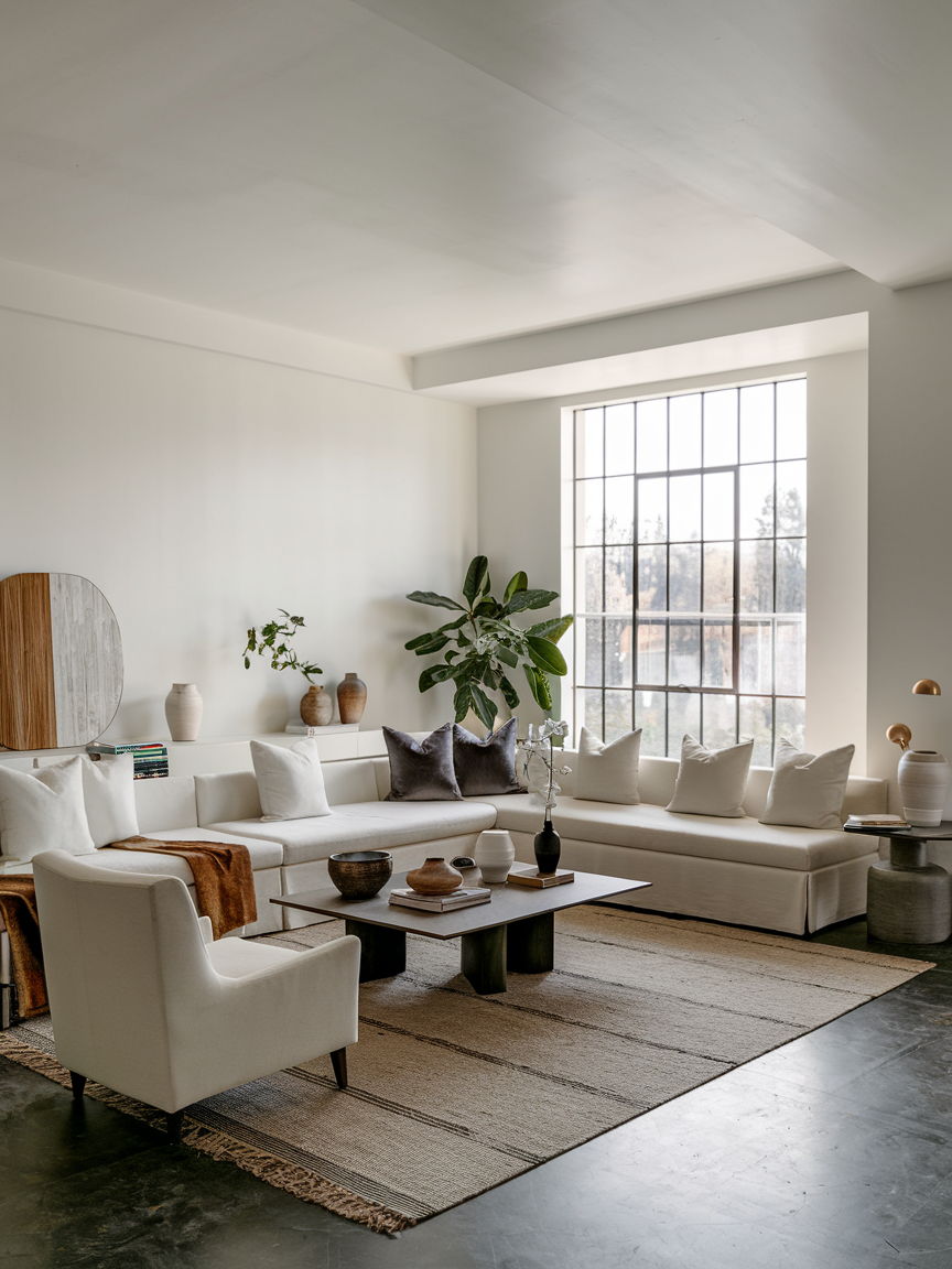 Crisp white walls offer a clean, bright foundation that allows every other element in your living room to shine. When styled thoughtfully, white feels anything but plain, it becomes a sophisticated backdrop for statement furniture, artwork, and decorative accents. The key is incorporating layers of texture to avoid a sterile feel. Add plush rugs, woven baskets, linen curtains, and soft throws to create warmth and dimension. White reflects light exceptionally well, making smaller living rooms appear larger and more open. It also provides unmatched flexibility, allowing you to experiment with seasonal décor changes without ever needing to repaint. Simple, fresh, and endlessly adaptable, white remains a timeless favorite.