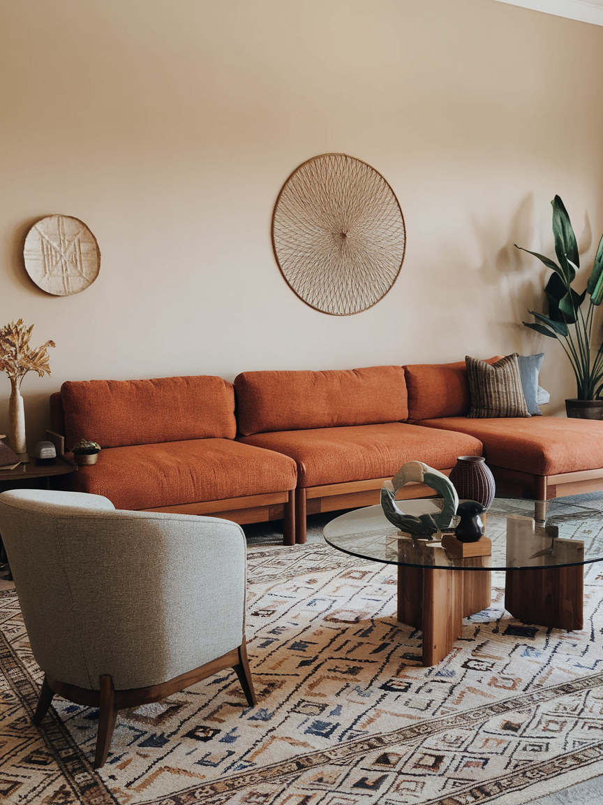 Burnt orange injects energy and personality into your living room without crossing into overly bright territory. Its warm undertones create a welcoming environment that feels lively yet balanced. This color pairs well with natural wood, woven textures, patterned cushions, and abundant greenery for a harmonious look. In spaces with good lighting, burnt orange develops a rich glow that enhances its warmth. It’s ideal for bohemian, retro, or eclectic interiors where creativity and comfort go hand in hand. The overall effect is cheerful, dynamic, and full of character.
