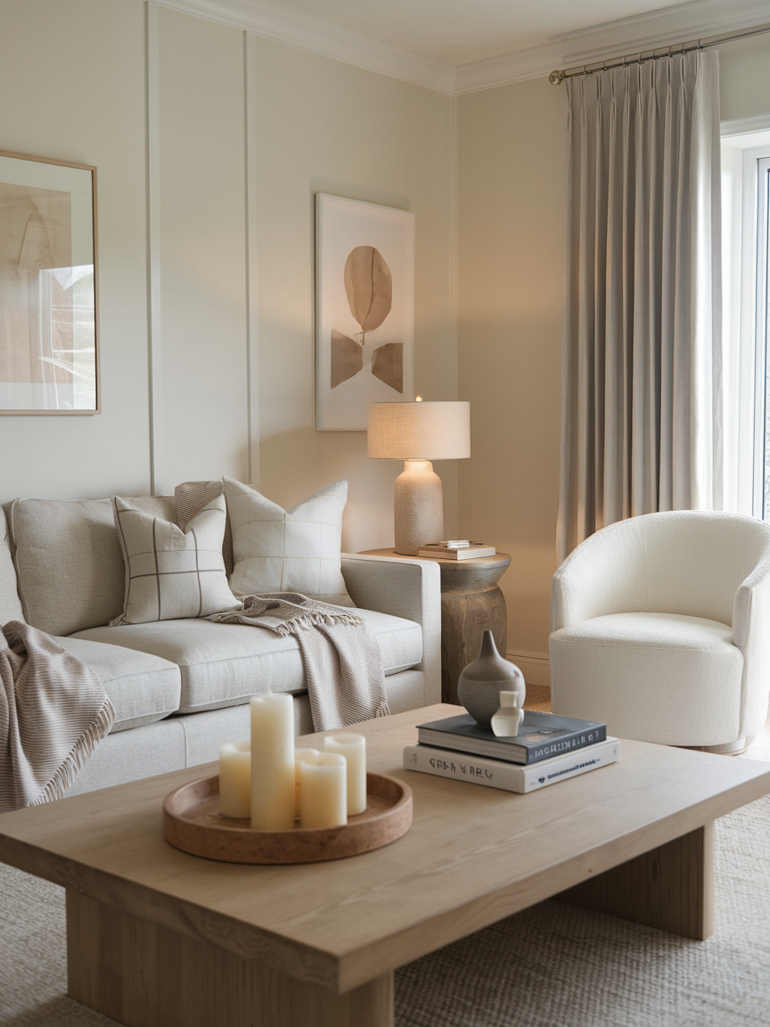 Styling the coffee table thoughtfully enhances the room’s sophistication. Choose a few curated items such as neutral books, a ceramic vase, and a small decorative tray. Keep the arrangement balanced and uncluttered. The goal is to create visual interest while preserving openness. This restrained approach reflects modern coastal elegance.