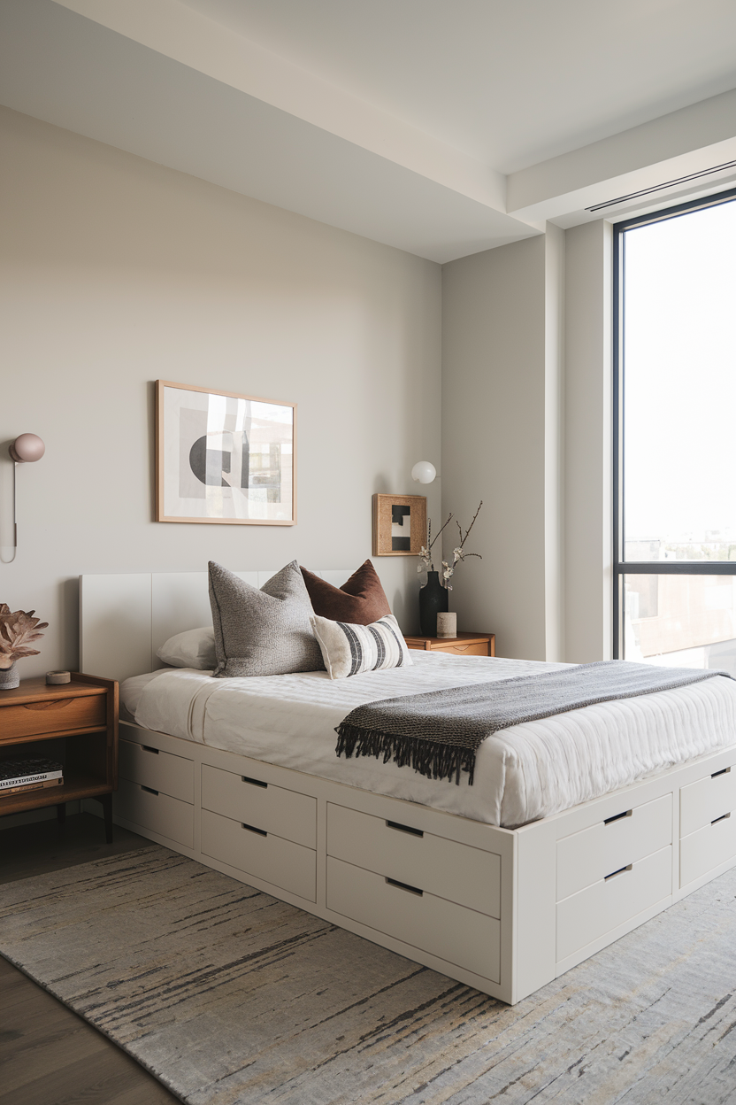 A storage bed is a game-changer for small bedrooms. These beds come with built-in drawers or a hydraulic lift-up base that lets you access hidden compartments under the mattress. It’s a fantastic way to maximize space that would otherwise go unused. Use these hidden areas to stash extra bedding, seasonal clothes, or even luggage. Some designs also include headboards with cubbies or shelving, adding even more built-in functionality.