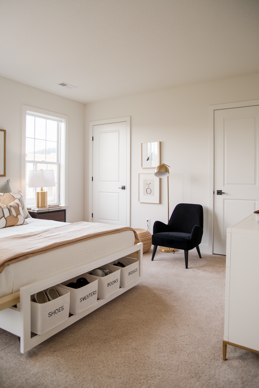 Don’t let the space under your bed collect dust. Put it to work with flat storage bins or rolling drawers. These containers are perfect for shoes, sweaters, books, or anything else that doesn’t need to be on display but still needs a place to go. Opt for clear or labeled bins to make retrieving items quick and easy. You can even find under-bed organizers with compartments or dividers to keep things extra neat.
