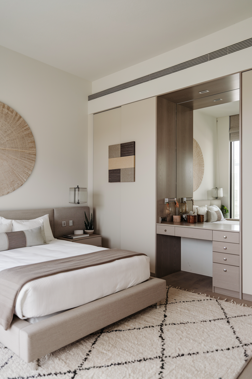Look for pieces that serve more than one purpose, like a mirror that opens to reveal jewelry storage or a vanity that doubles as a desk. The more jobs your furniture can do, the less you’ll need overall, which is essential when trying to create a spacious feeling in a small bedroom. Prioritizing multifunctional pieces helps reduce clutter and keeps your space feeling calm and purposeful.