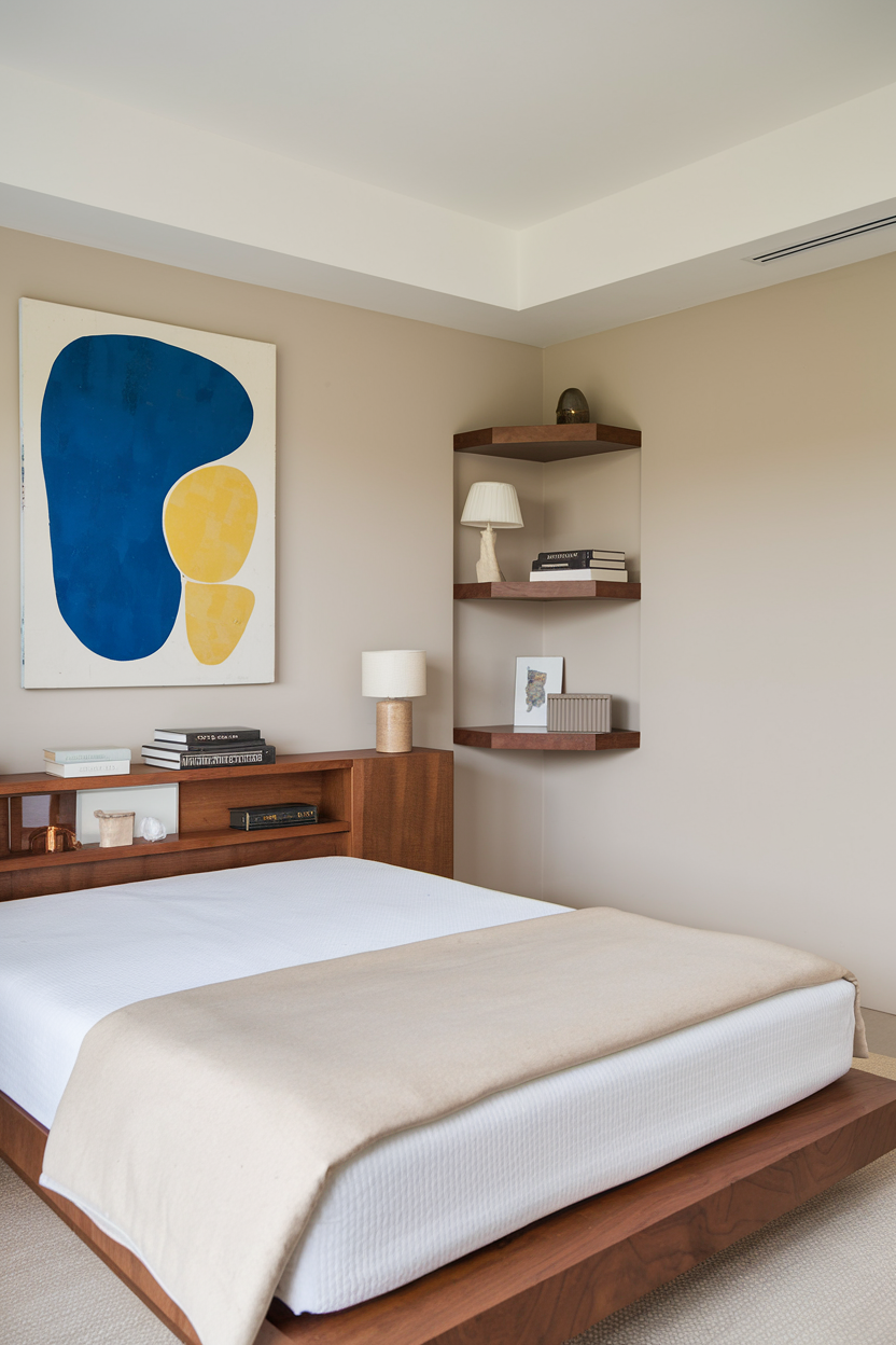 Corners are often wasted space, but they can be put to great use with custom corner shelves. These shelves can hold books, decor, plants, or bedside necessities without intruding into your walkways. Unlike standard shelving units, they fit snugly and unobtrusively, turning overlooked areas into functional design elements. They’re especially useful in oddly shaped rooms where conventional furniture doesn’t quite fit.