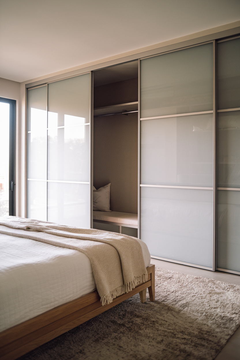 Traditional closet doors swing out and take up floor space, but sliding doors stay flush against the wall, which makes them a better choice for tight quarters. You’ll gain back valuable square footage that can now be used for a chair, hamper, or shelving unit. You can even find mirrored sliding doors, which add depth and reflect light to make the room feel bigger.