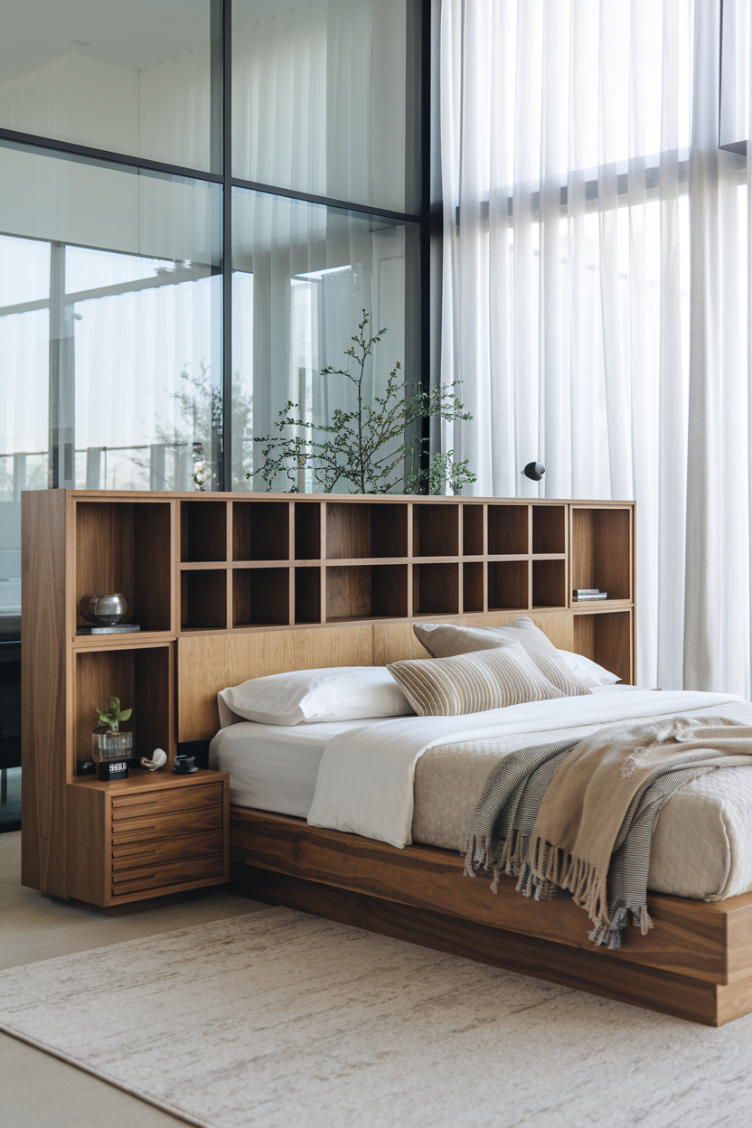 Storage headboards are an excellent way to integrate organization into your bed frame without taking up additional room. Many models offer open cubbies, sliding doors, or hidden compartments for books, electronics, and nighttime essentials. This type of headboard eliminates the need for bulky nightstands and helps keep everything you need within arm’s reach while maintaining a clean, clutter-free appearance.