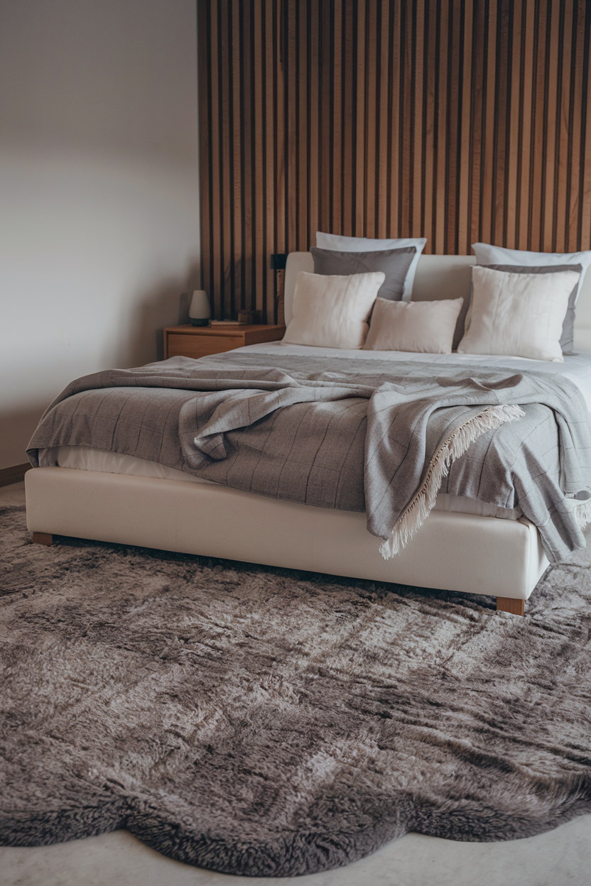 Nothing feels more inviting than stepping onto a plush, oversized rug when you get out of bed. Choose rugs made from high-quality materials like wool, silk, or shag to add texture and warmth to your bedroom floor. A large rug, especially in dark hues or rich, deep colors, helps to define the space while adding comfort underfoot. Consider layering rugs to enhance the texture and visual appeal, with a large statement rug beneath a smaller, complementary one. This will create a welcoming environment that encourages relaxation, offering both style and function in one.