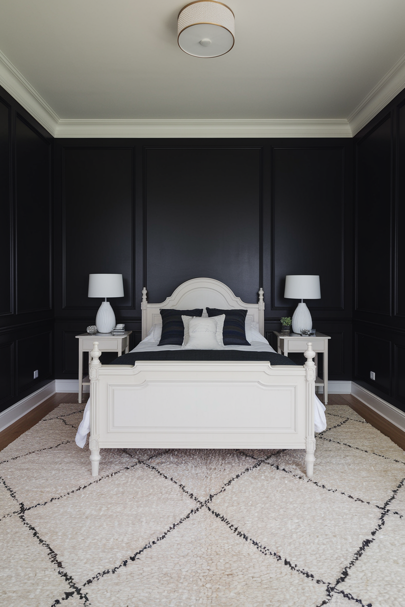 6. Black Walls and White Bedding