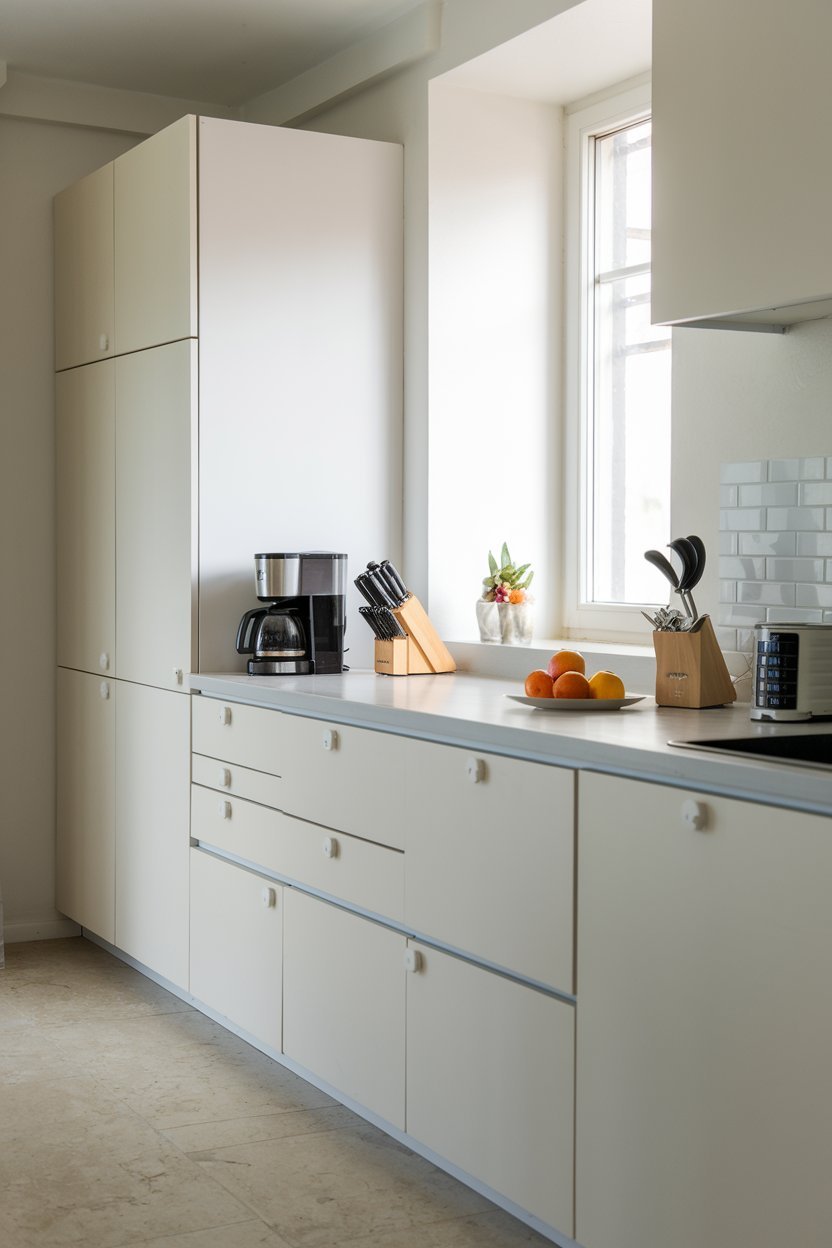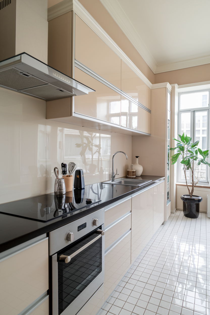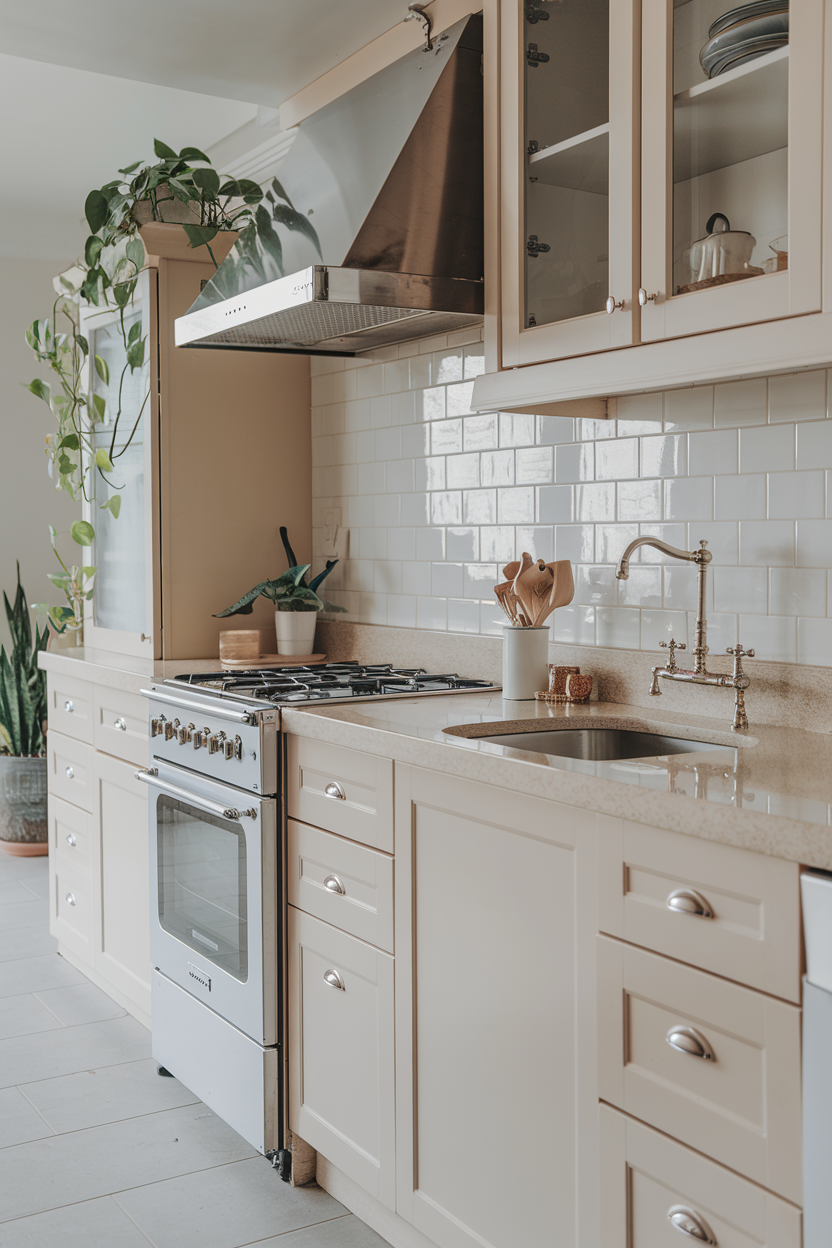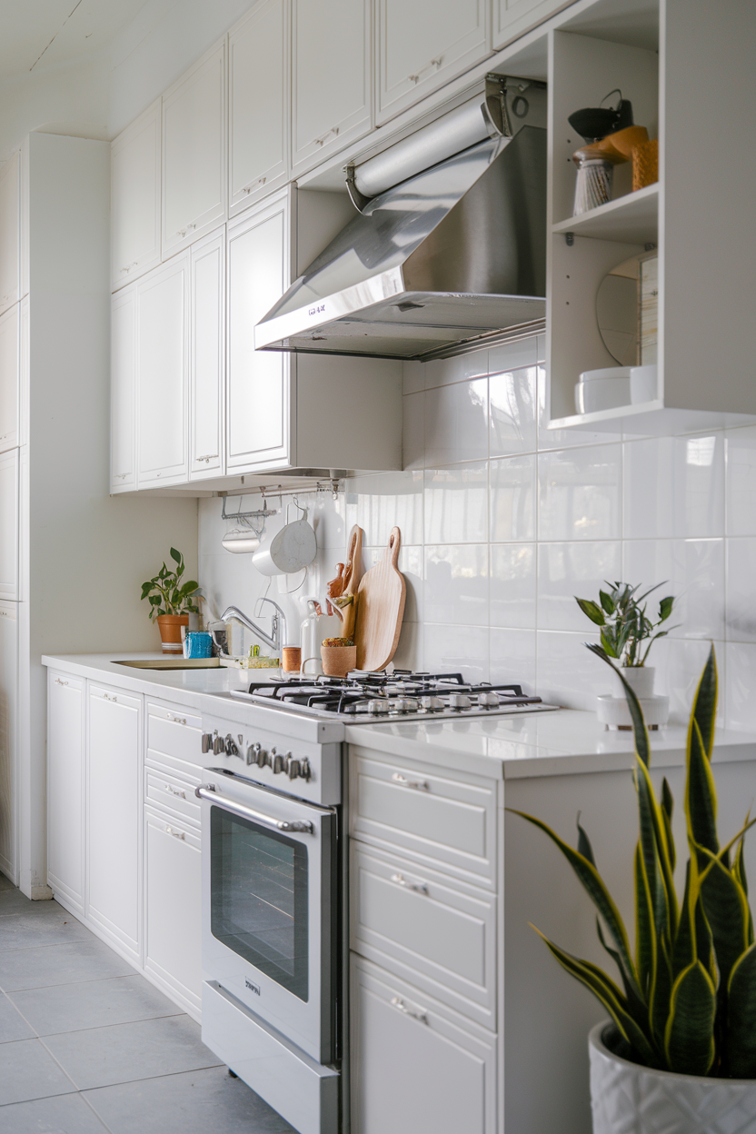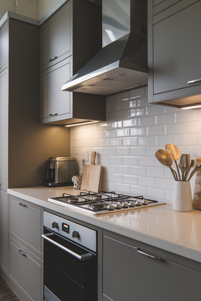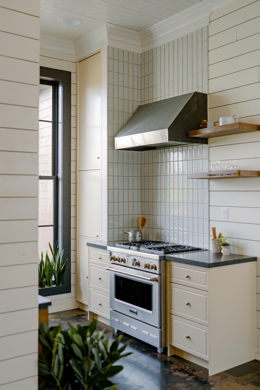 Vertical design elements draw the eye upward and create the illusion of added height in compact kitchens. Incorporate vertical lines through features like shiplap walls, tall tile backsplashes, vertical handles, or vertically oriented storage. These patterns break up horizontal monotony and add dynamic visual interest. This trick works well in kitchens with low ceilings, making the room feel taller and more spacious. Combined with light colors, vertical elements contribute to a clean and uplifting kitchen atmosphere.
