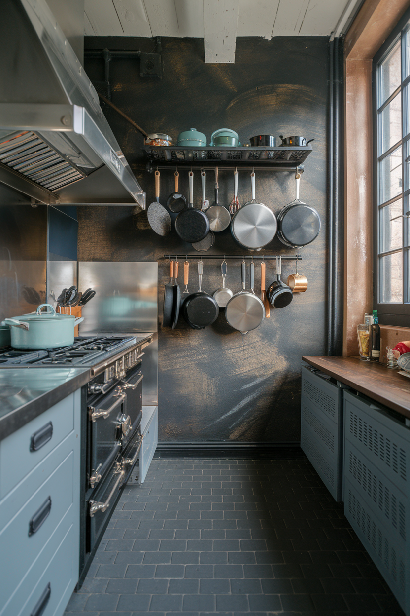 Wall-mounted pot racks free up cabinet space while adding a decorative and functional feature to your kitchen. By displaying pots and pans along a wall or above the stove, you make use of vertical space and keep cookware easily accessible. This approach can add a rustic, industrial, or contemporary flair, depending on the materials and finishes you choose. To avoid a cluttered look, arrange cookware by size or color for a cohesive appearance.
