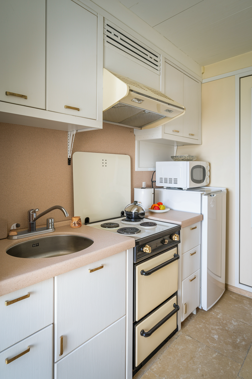 Standard-sized appliances can overpower a very small kitchen and make it feel even more cramped. Instead, choose compact or apartment-sized models of refrigerators, dishwashers, and stoves. These appliances are designed to offer full functionality in a smaller footprint. Many brands now offer space-saving models that are stylish and energy-efficient, so you don’t have to sacrifice performance or design in order to create a well-functioning kitchen in a limited space.