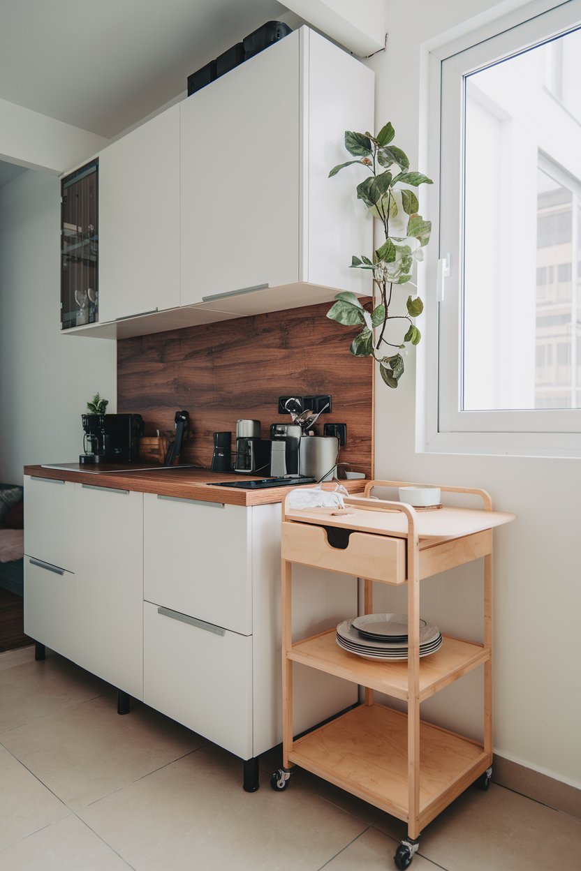 In very small kitchens, a clutter-free countertop can make the space feel significantly larger and more functional. Limit what you keep out to just the essentials, like a coffee maker, knife block, or fruit bowl, and find hidden storage for everything else. Clean counters not only enhance your kitchen’s appearance but also give you more room for meal prep and cooking. It’s one of the simplest yet most effective space-saving strategies.