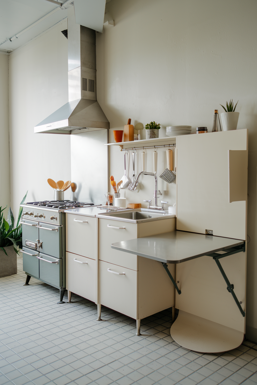 A fold-down or drop-leaf table is a smart solution for adding dining or prep space without permanently taking up floor space. Mounted to the wall, these tables can be folded away when not in use, making them ideal for ultra-small kitchens or studio apartments. They provide a versatile surface for meals, food prep, or even working from home, and they blend seamlessly into your kitchen design when collapsed.