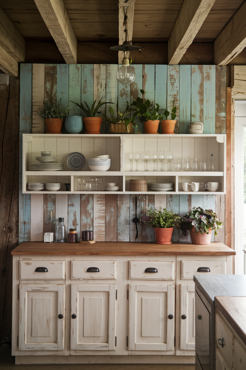 Weathered wood brings the soul of the countryside right into your kitchen. Whether it’s salvaged barn wood or treated to look aged, the soft grays and warm browns in distressed wood panels add depth, history, and character. It’s ideal behind open shelving where it can peek through your kitchen accessories or rustic dinnerware, giving the kitchen an authentic, hand-built charm that’s hard to replicate.