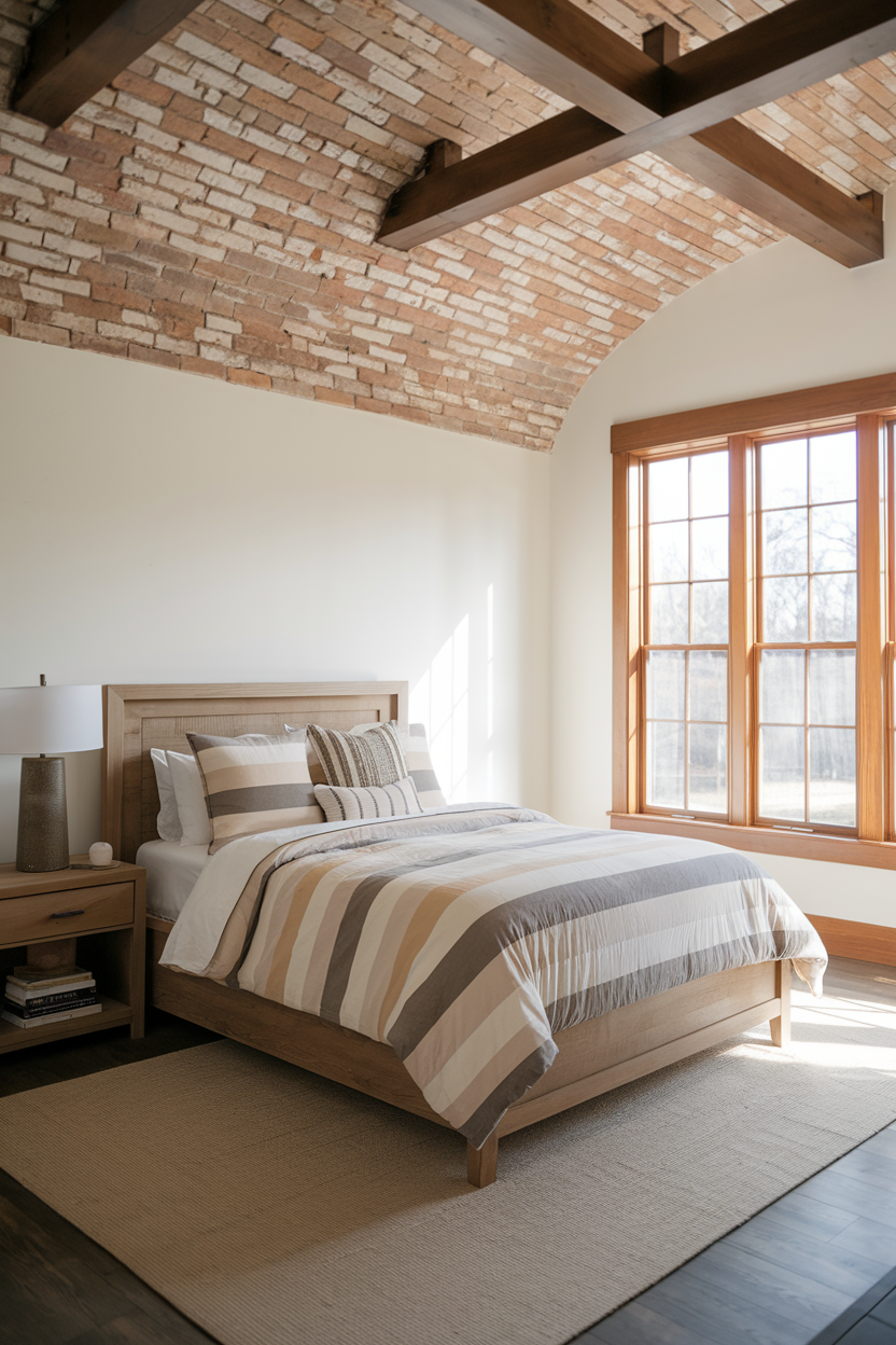 Using brick on the ceiling is an unexpected but stunning way to add depth and texture to a room. This design feature works especially well in rooms with high or vaulted ceilings, where the brick can add a sense of coziness without feeling too enclosed. Paired with warm lighting fixtures and wooden beams, a brick ceiling exudes rustic elegance and can easily become the focal point of the room.