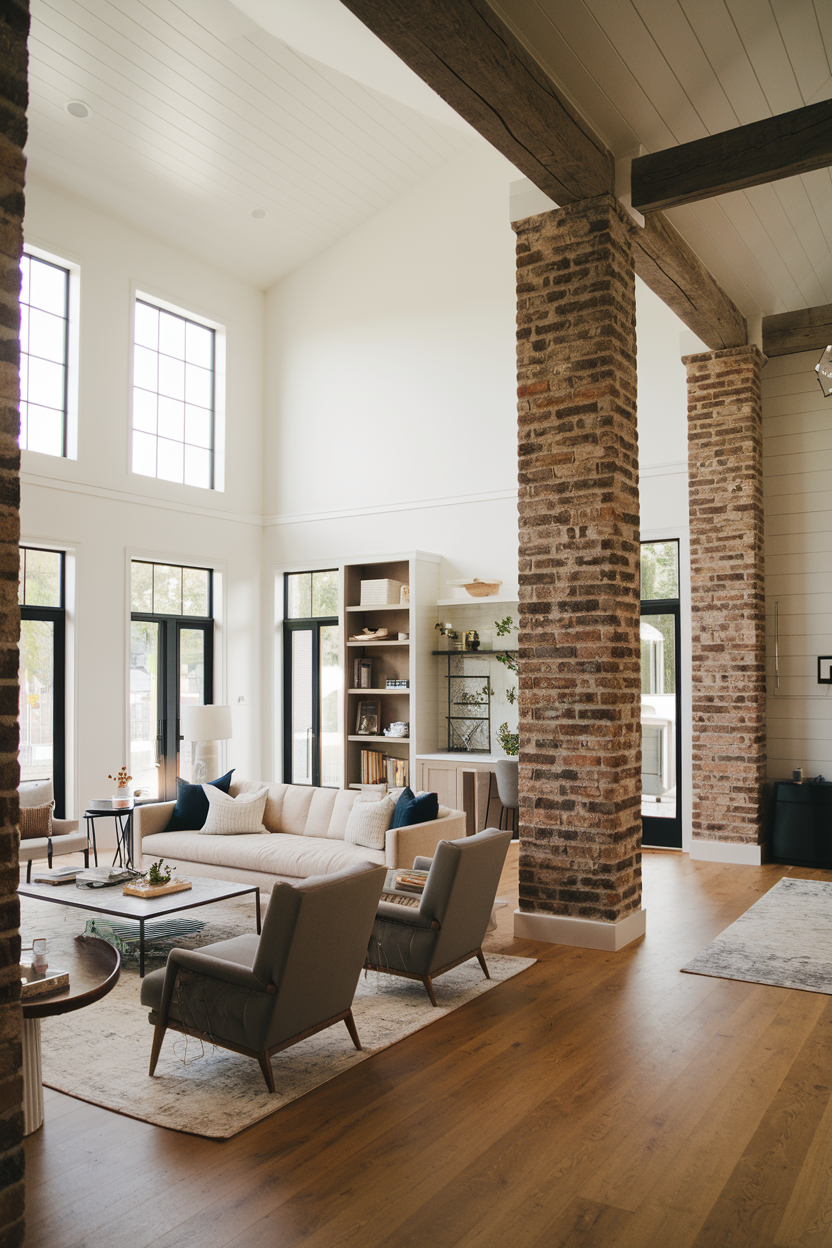 Brick columns introduce an architectural element that adds structure and personality to both interior and exterior spaces. These columns can be used to frame entryways, open-concept rooms, or even as a visual divider between rooms. The rich texture of the brick creates an inviting, grounded atmosphere, perfect for spaces that want to combine rustic charm with contemporary elements. Whether you use them to support a porch roof or as a standalone design feature, brick columns make a statement without overpowering the space.