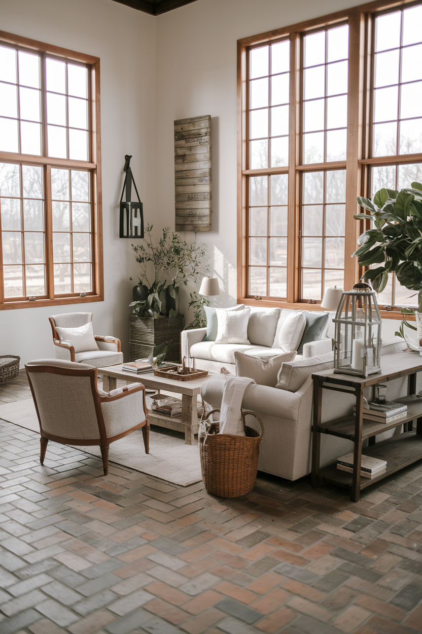 Brick flooring offers timeless beauty and durability, making it ideal for areas like entryways, kitchens, or sunrooms. The natural texture and earthy tones of the brick create an inviting atmosphere and bring a vintage feel to any room. Additionally, brick floors are incredibly durable and easy to maintain, making them a practical choice for high-traffic areas. Paired with warm wooden furniture or sleek modern decor, brick floors add character that ages beautifully over time.