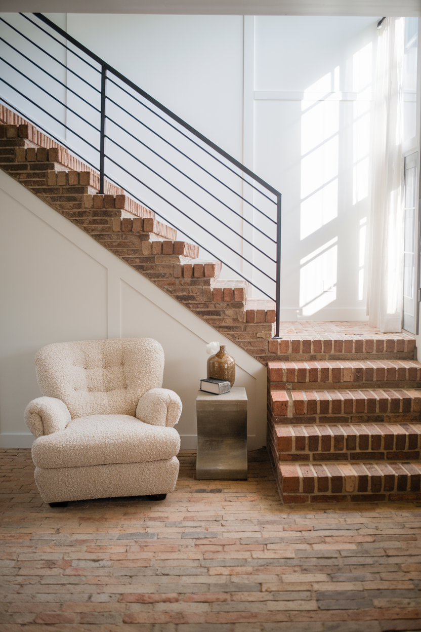 Brick stair risers add an unexpected touch of charm to your staircase, transforming a basic architectural element into a visually striking feature. The texture of the brick contrasts beautifully with wood or metal treads, making the stairs an eye-catching focal point in the home. This subtle yet impactful addition works particularly well in rustic or industrial-style homes, creating a cohesive look when paired with exposed beams or brick walls.