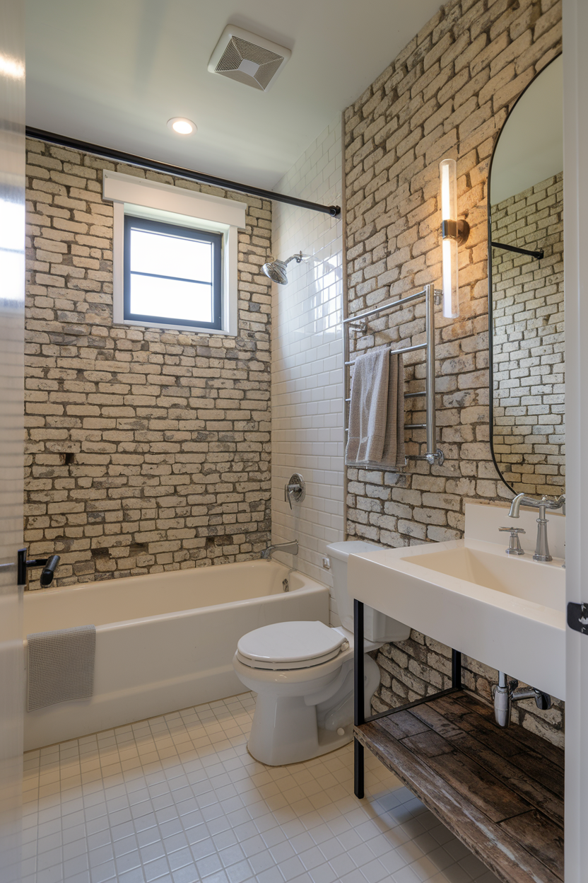 Brick walls in the bathroom are a great way to add character and warmth to what is often a functional and sterile space. The combination of raw brick and contemporary fixtures creates an industrial-chic look that works well with both modern and vintage-inspired designs. Adding brick to bathroom walls creates an unexpected, luxurious feel, especially when paired with sleek metal accents, reclaimed wood, and statement mirrors.