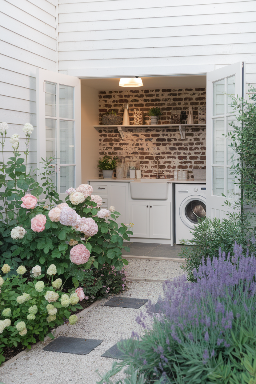 The laundry room may not be the first place you’d think of adding brick, but a brick backsplash in this space can add a surprising touch of charm. The durable material is perfect for high-traffic areas, and the visual texture it brings to the room helps to break up the otherwise utilitarian design of a laundry space. Pairing the brick with clean white cabinetry or wooden accents makes the room feel cozier and less like a functional space, creating a more inviting and stylish environment.
