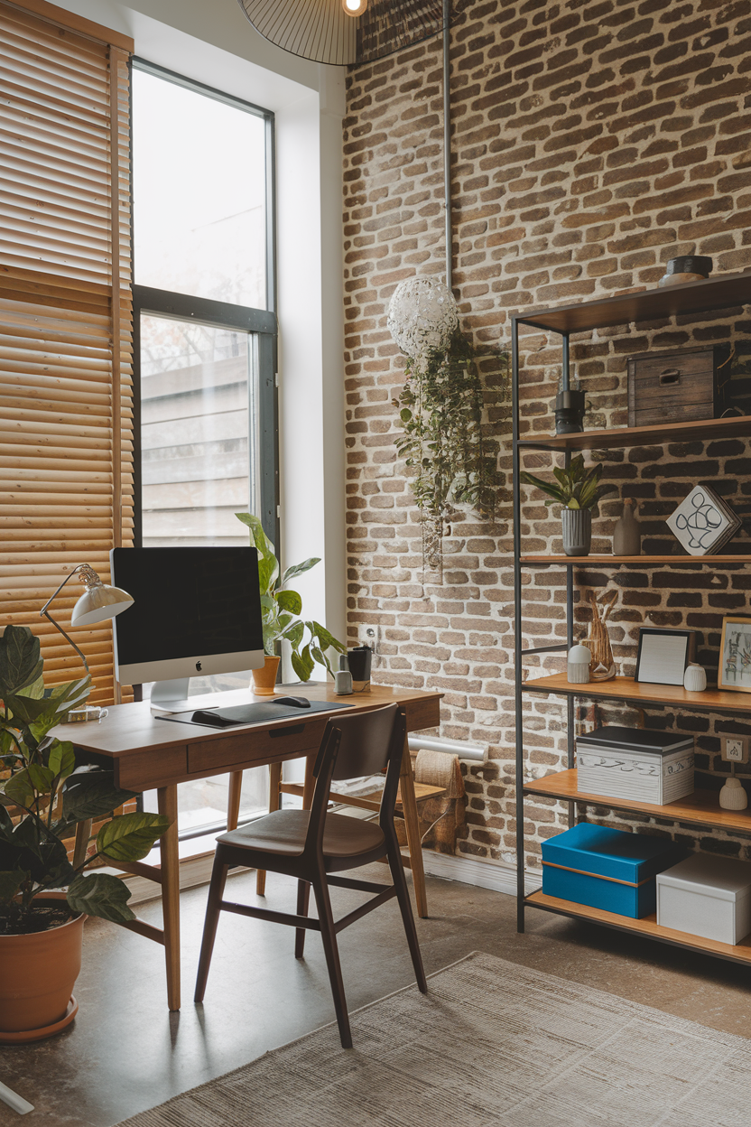 Adding a brick accent wall in the home office gives the space a grounded, cozy atmosphere that’s perfect for creativity and productivity. The natural texture of brick adds warmth and a sense of history, making it an ideal backdrop for modern furniture, bookshelves, and art. Whether you choose an exposed brick wall for a raw, industrial vibe or a painted brick feature for a more polished look, it will undoubtedly elevate the ambiance and offer a timeless, inspiring environment.