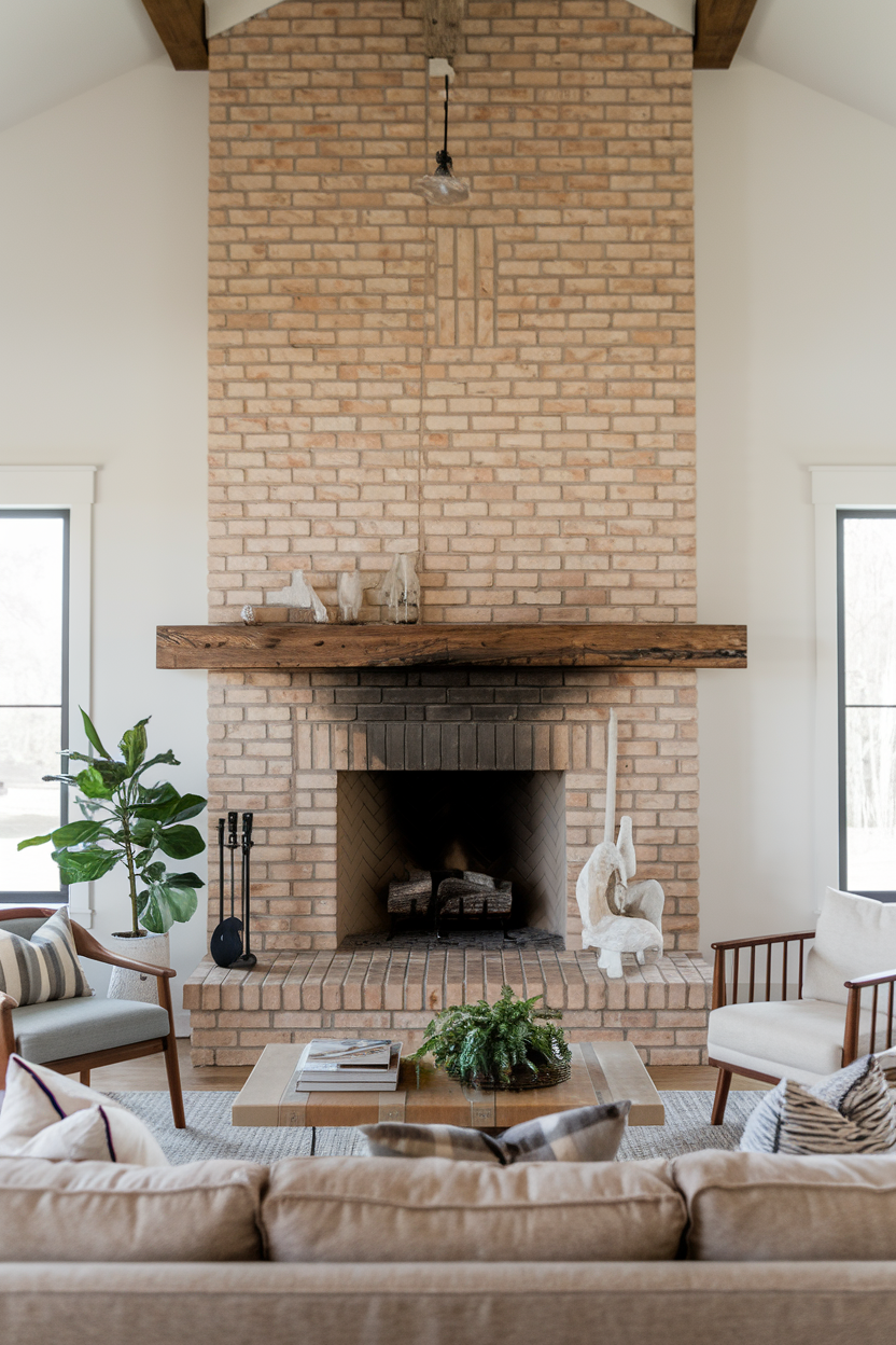 A brick fireplace is a timeless addition to any home, especially when the brick is the star. The natural material adds warmth to your space both literally and figuratively. Whether you opt for a traditional, full-height surround or a more modern, minimalist design with a simple brick frame, this feature becomes the heart of your living space. Combining the warmth of the brick with contemporary or classic furniture and lighting turns your fireplace into a stunning centerpiece.