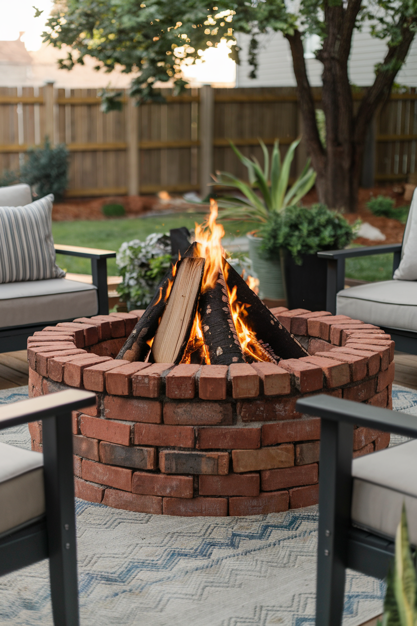 A brick fire pit in your backyard not only creates a stunning focal point but also serves as a gathering spot for friends and family during cooler evenings. The durability and warmth of the brick make it an ideal choice for an outdoor fire pit, offering both functionality and charm. Surrounding the fire pit with comfortable seating, outdoor rugs, and soft lighting enhances the rustic and inviting feel of the space. Whether you’re roasting marshmallows or simply enjoying a warm evening, a brick fire pit makes your outdoor area timelessly stylish.