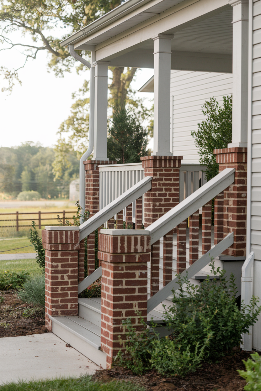 If you’re looking for a way to add rustic charm to your porch, consider integrating brick into your porch railings or columns. Brick accents on railings bring a bit of architectural history into your outdoor space, complementing traditional or farmhouse-style designs. The textured brick contrasts beautifully with wooden railings and gives the exterior of your home a grounded, organic feel. This feature helps create a cozy, welcoming vibe that’s perfect for enjoying outdoor evenings or entertaining guests.