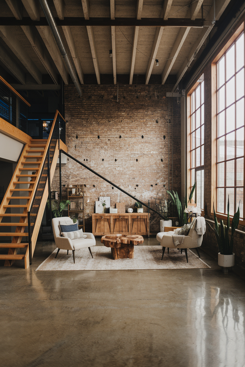 Incorporating a brick backdrop in an industrial loft creates a sophisticated, raw atmosphere. The weathered texture of the brick contrasts beautifully with polished concrete floors and sleek metal finishes. A brick accent wall is the perfect backdrop for contemporary art, vintage furniture, and bold lighting fixtures, bringing the space together in a harmonious blend of rustic charm and modern style.