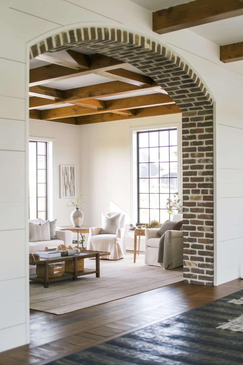 An entryway arch framed with brick instantly elevates the look of your home’s entrance. This feature introduces a timeless architectural element that adds both structure and elegance. The warm, natural texture of the brick contrasts beautifully with modern or classic door hardware and light fixtures. It provides a welcoming, sophisticated atmosphere as soon as you step inside, making it the perfect first impression for guests.