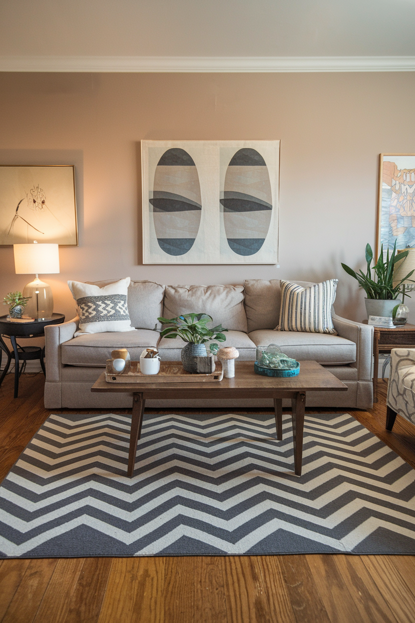 Chevron designs create a dynamic, zigzag effect that brings movement and vibrancy to your living room. When featured in bold colors or tonal neutrals, they can enhance the sense of depth and add playful sophistication. These rugs are excellent for grounding modern furniture or injecting rhythm into a room that leans heavily on straight lines and simple silhouettes. They also work well in high-traffic areas, thanks to their ability to camouflage wear and maintain visual appeal over time.