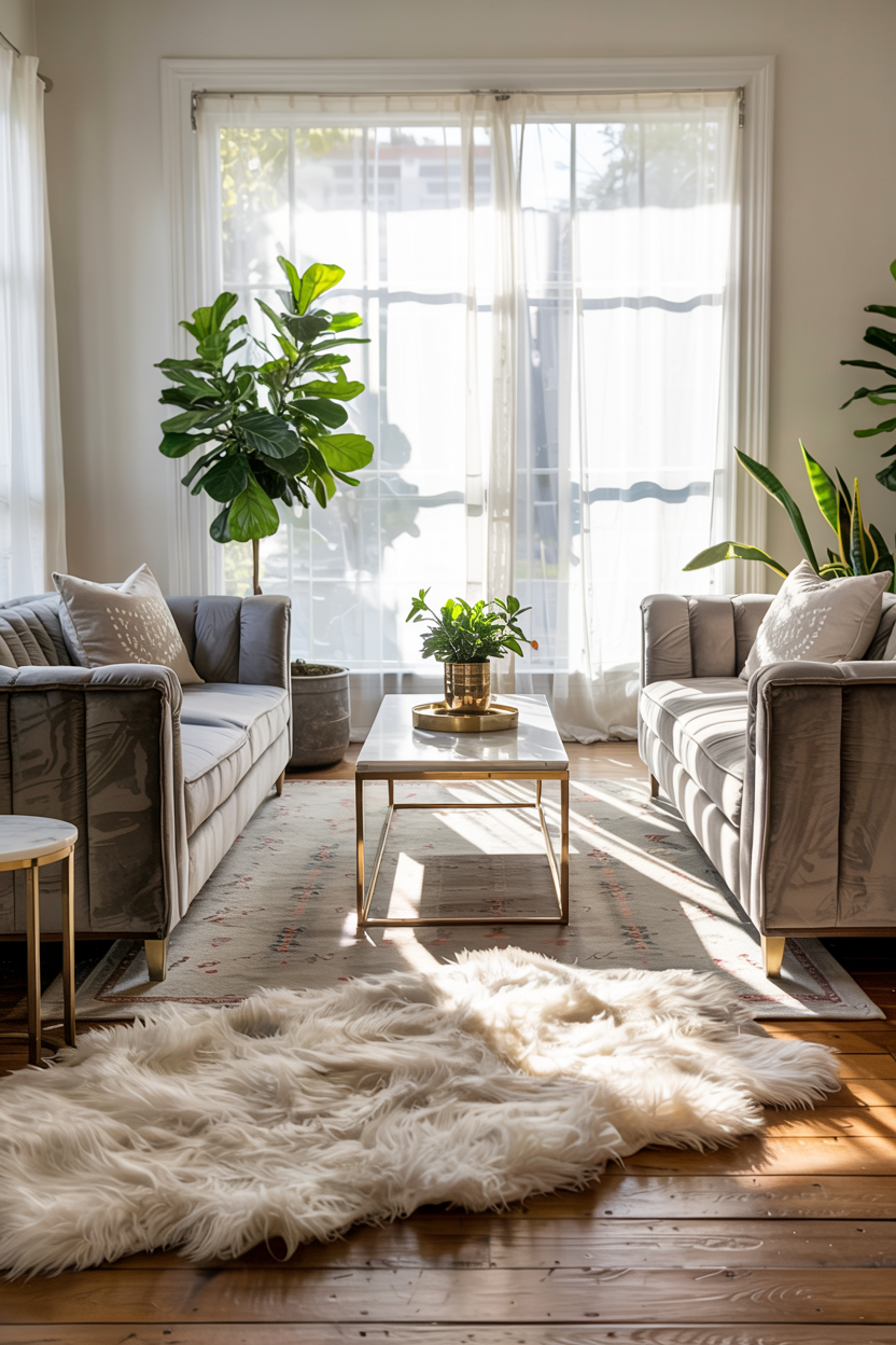 Faux fur rugs introduce luxurious texture and a cozy vibe that makes any space feel more inviting. Use a small faux fur rug layered on top of a larger neutral piece to create dimension and softness underfoot. Perfect for adding a touch of glam or hygge, these rugs are great near a reading nook, in front of a fireplace, or at the center of a boho-style layout. The plush feel makes your living room instantly more comfortable and indulgent.