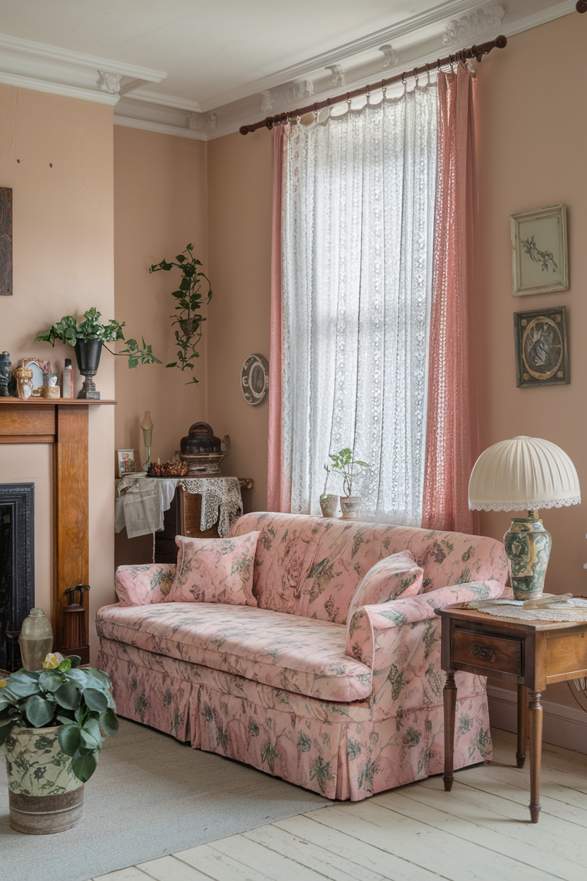 For a more romantic and vintage-inspired living room, a floral pink sofa can add an extra layer of charm and elegance. The floral patterns paired with the soft pink upholstery create a feminine atmosphere that’s both timeless and inviting. This type of sofa works well in shabby-chic or cottage-inspired homes, where the emphasis is on soft, cozy interiors. The floral design introduces a natural element to the space, creating a sense of warmth and nostalgia.