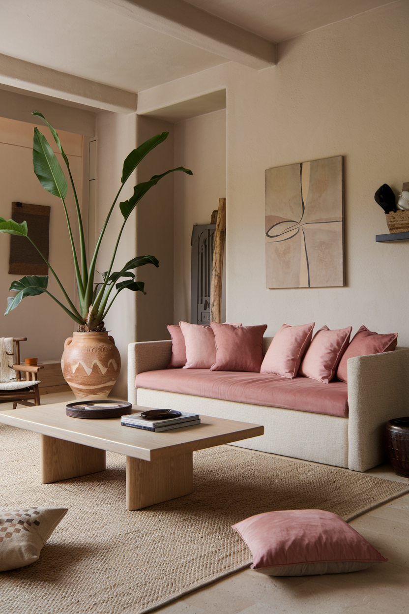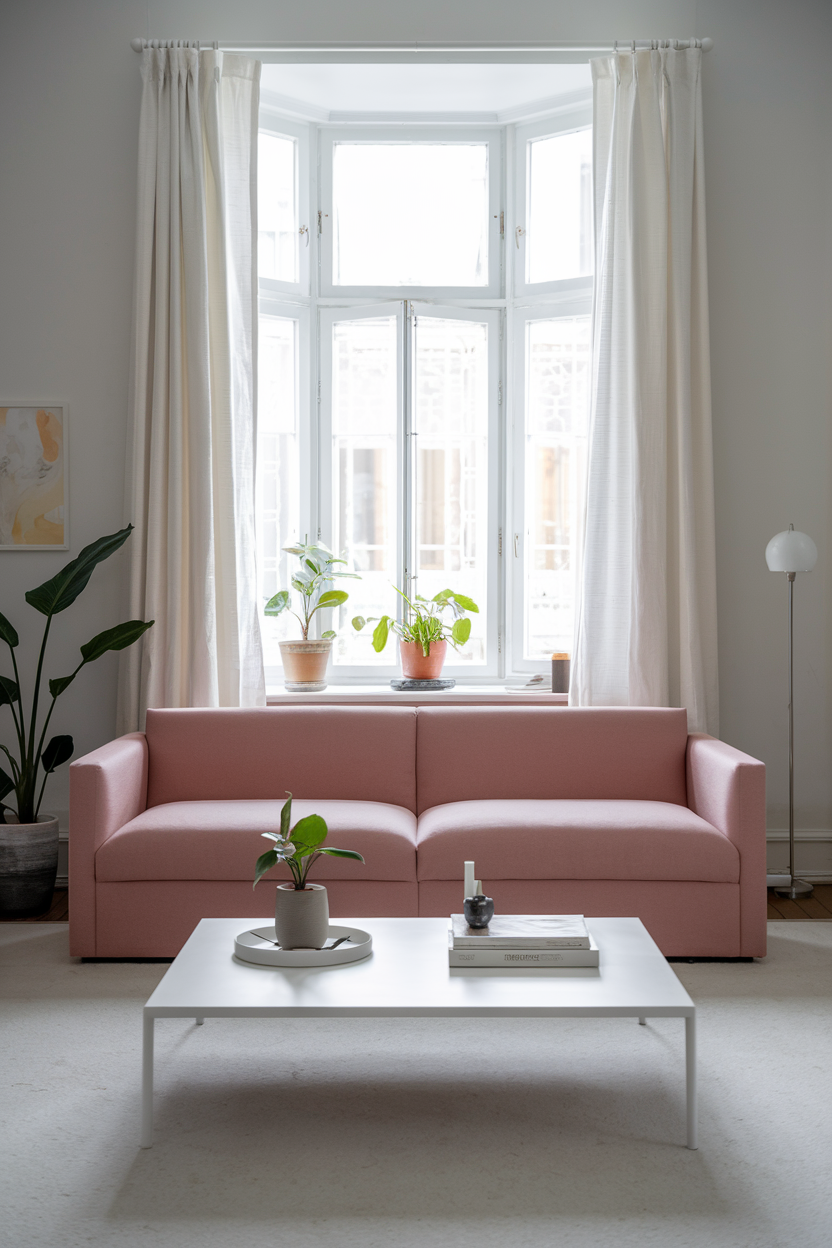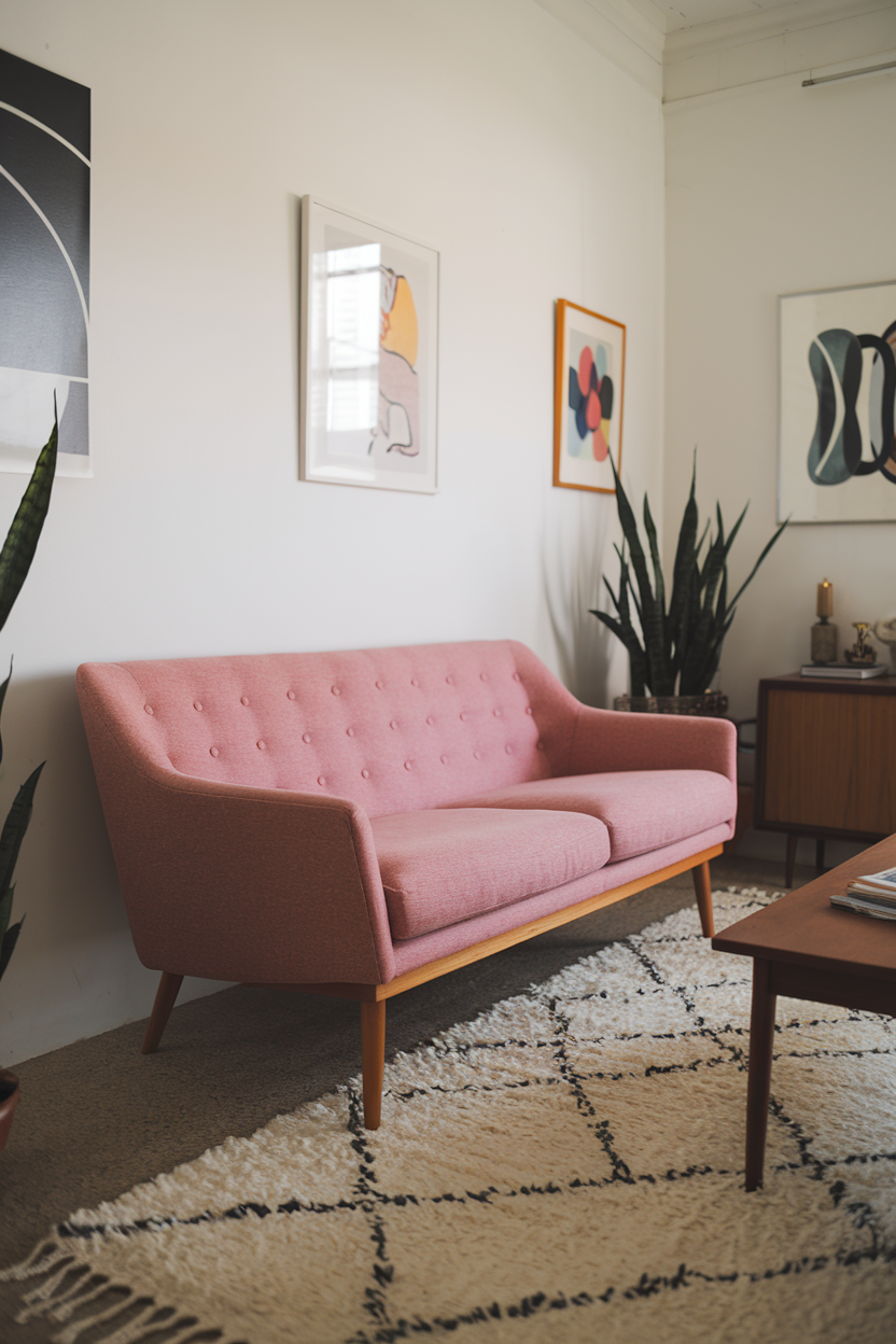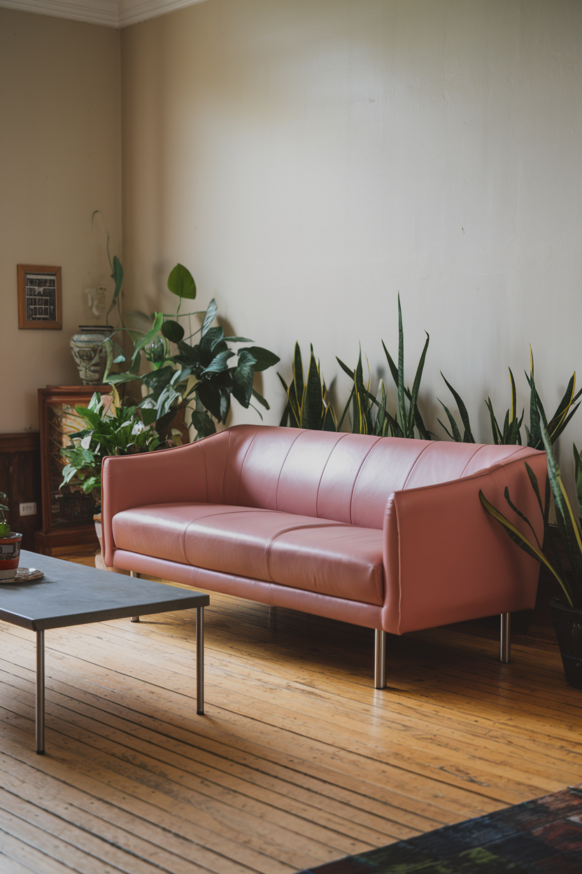 Natural materials, layered textures, and neutral backdrops allow a pink sofa to shine without overwhelming the space. Clean lines and thoughtful accessories help refine the look, while bolder pairings like patterned rugs or colorful artwork make it feel curated and full of character.