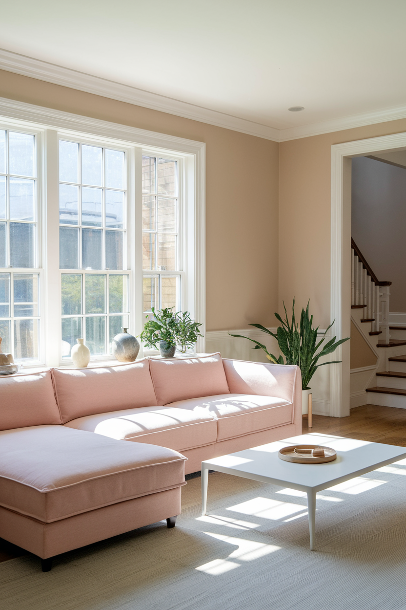 A pastel pink sectional sofa is an excellent option for those seeking both style and comfort in their living room. The soft, pastel hue evokes a sense of calm and relaxation, perfect for a space where you entertain guests or unwind after a long day. With its spacious seating and cozy cushions, this sectional allows you to create a welcoming and comfortable area for family and friends. Pastel pink is a versatile shade that pairs well with a variety of accent colors, from soft neutrals to bolder jewel tones, giving you plenty of room for creativity in your decor.