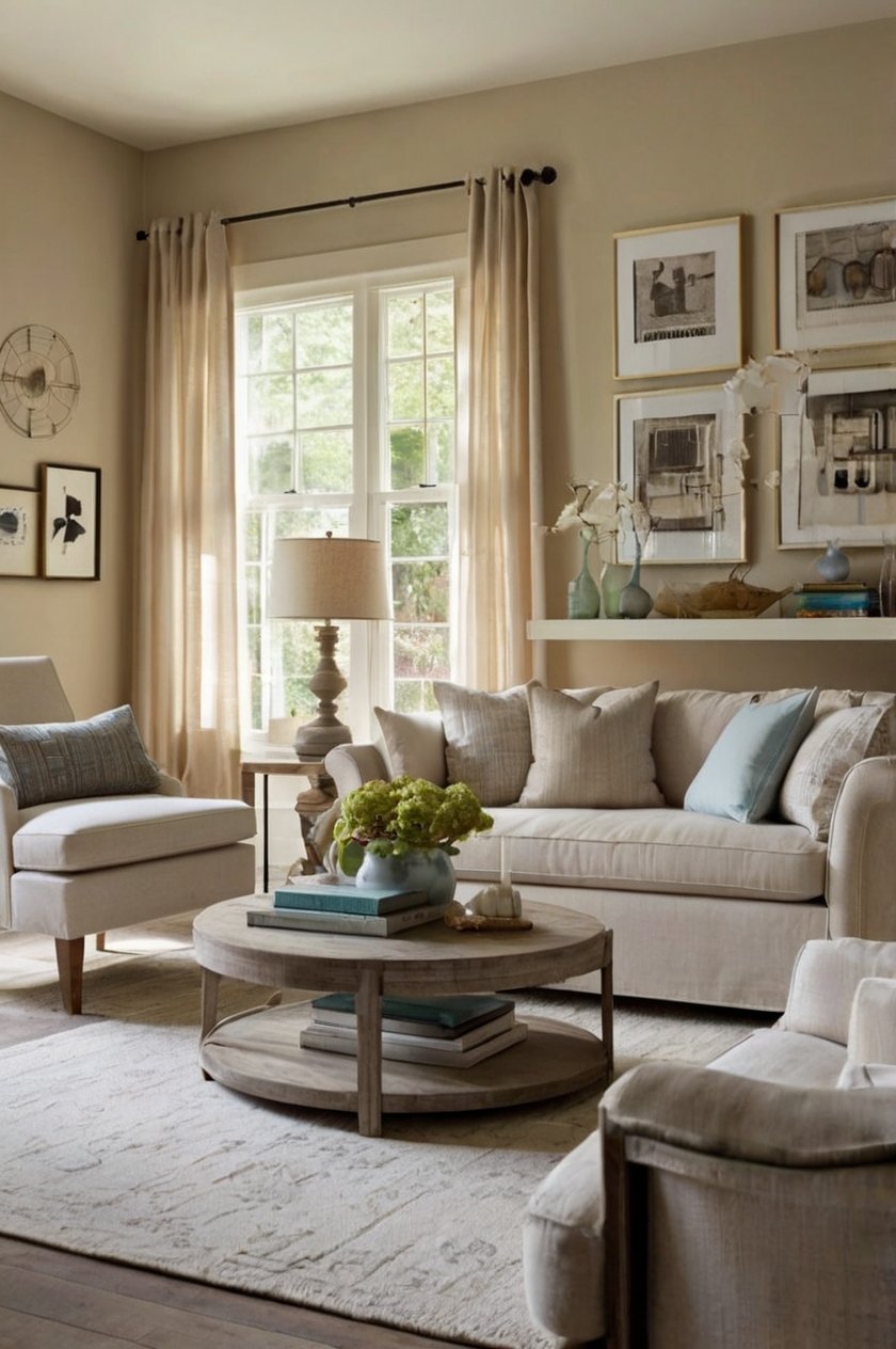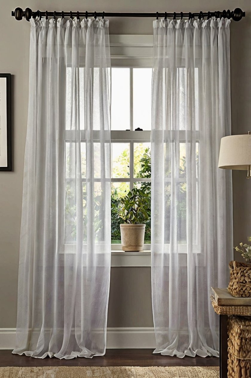 To make your living room feel taller, try hanging curtains higher than the window frame, closer to the ceiling. This design trick draws the eye upwards, creating the illusion of height. Choose long, flowing curtains in light fabrics to enhance this effect and allow natural light to filter through. Not only will this make the room feel more open, but it also adds a touch of elegance and sophistication to the space.