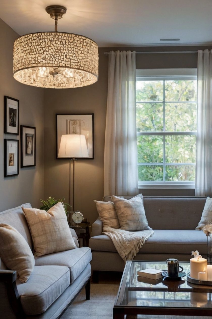 In a small living room, the right lighting can make all the difference. Instead of relying solely on overhead lighting, incorporate various sources of accent lighting to create a warm, inviting atmosphere. Floor lamps, table lamps, or wall sconces placed in different corners of the room can add layers of light, making the space feel cozy and well-lit without overwhelming it. Opt for dimmable lighting options to easily adjust the ambiance based on the time of day or mood.