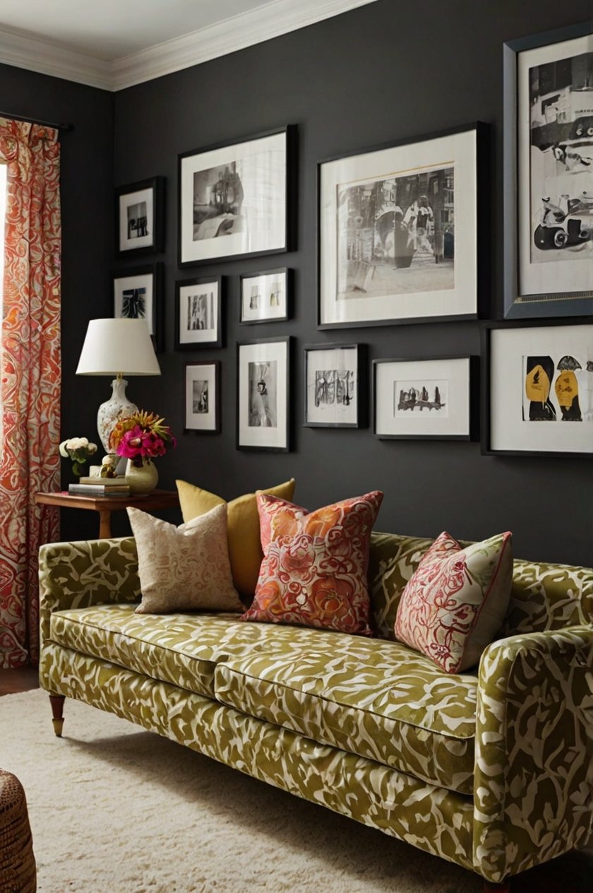 A gallery wall can add character and visual interest to a small living room without taking up any floor space. Choose a collection of artwork, photographs, or framed prints that complement your decor, and arrange them in an organized or eclectic pattern. A well-curated gallery wall can serve as a focal point and give the room a personalized touch while making use of otherwise empty wall space.