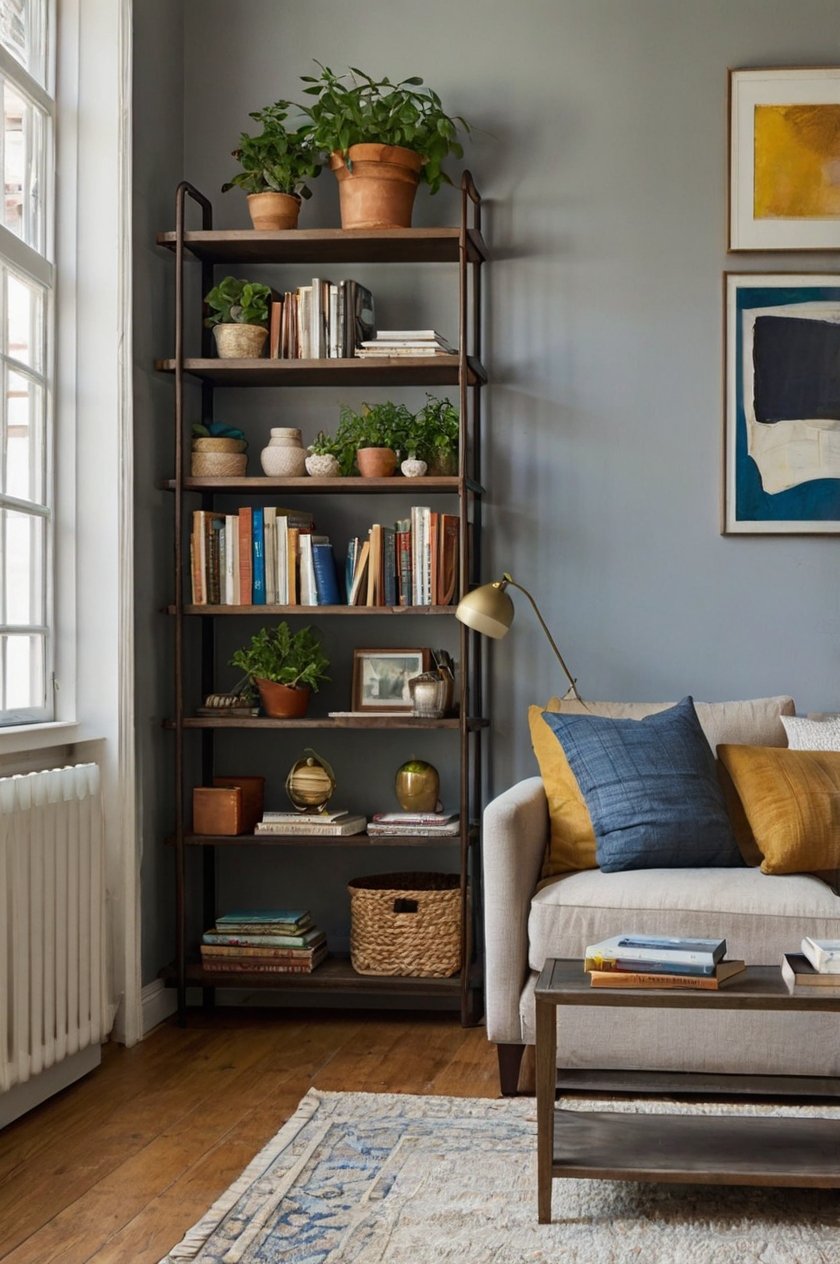 When you can’t spread out, go up! Vertical storage solutions are key to making the most of a small living room. Floating shelves, wall-mounted cabinets, and tall bookcases utilize unused vertical space and provide plenty of room for books, decorative items, plants, or media. This not only helps you keep the floor free from clutter but also draws the eye upwards, making the room feel taller and more spacious. A floor-to-ceiling shelving unit filled with carefully curated decor can even become a statement piece that adds both function and style to the room.