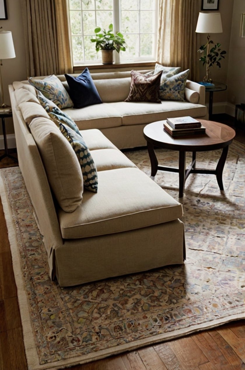 L-shaped or sectional sofas are excellent options for small living rooms as they make the most of awkward corners while providing plenty of seating. Place an L-shaped sofa against two walls to free up floor space in the center of the room, allowing for a more open layout. This layout helps create a cozy, defined seating area that doesn’t overwhelm the space, making it feel more functional and inviting.