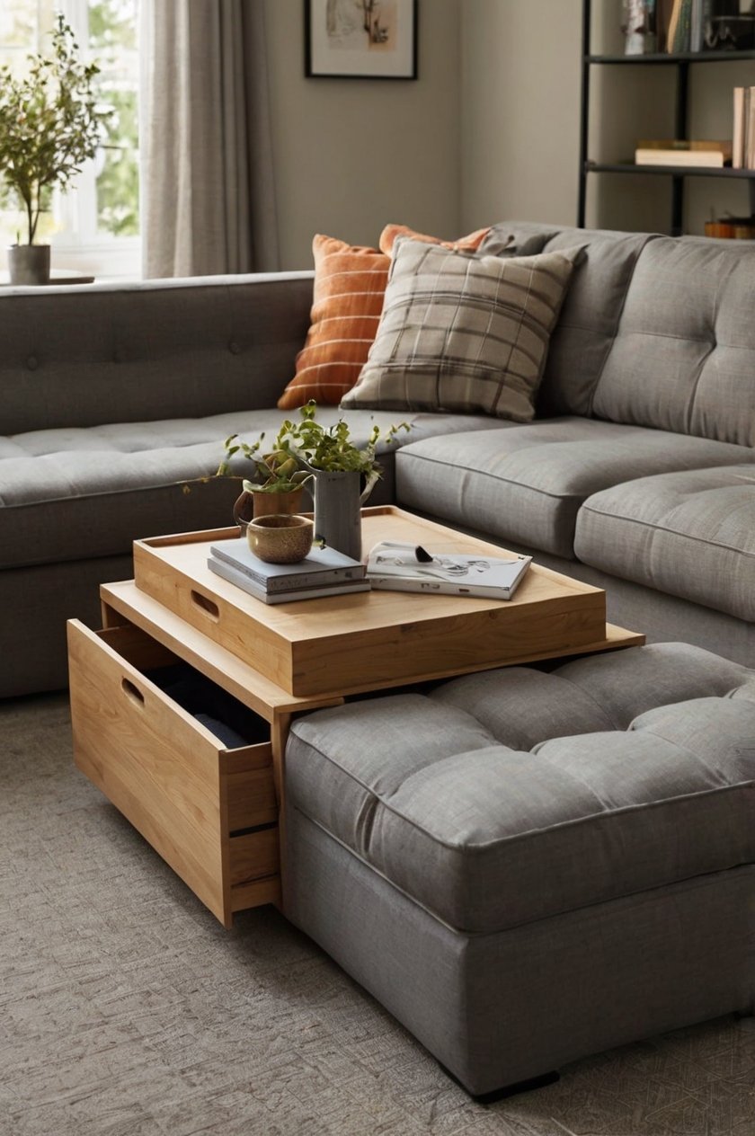 Small living rooms can quickly become cluttered, so incorporating hidden storage is a smart way to keep things tidy. Opt for furniture pieces with hidden compartments, such as a storage ottoman, a coffee table with drawers, or a sofa with built-in storage. This keeps items like blankets, books, and remote controls out of sight but easily accessible when needed.