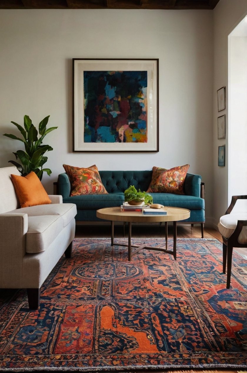 In a small living room, using area rugs to define zones can help create a sense of structure and organization. For instance, a rug beneath the coffee table can anchor the seating area, while a second rug in front of a reading nook can define that space. This technique not only helps to visually organize the room but also adds warmth and texture, making the space feel cozier.