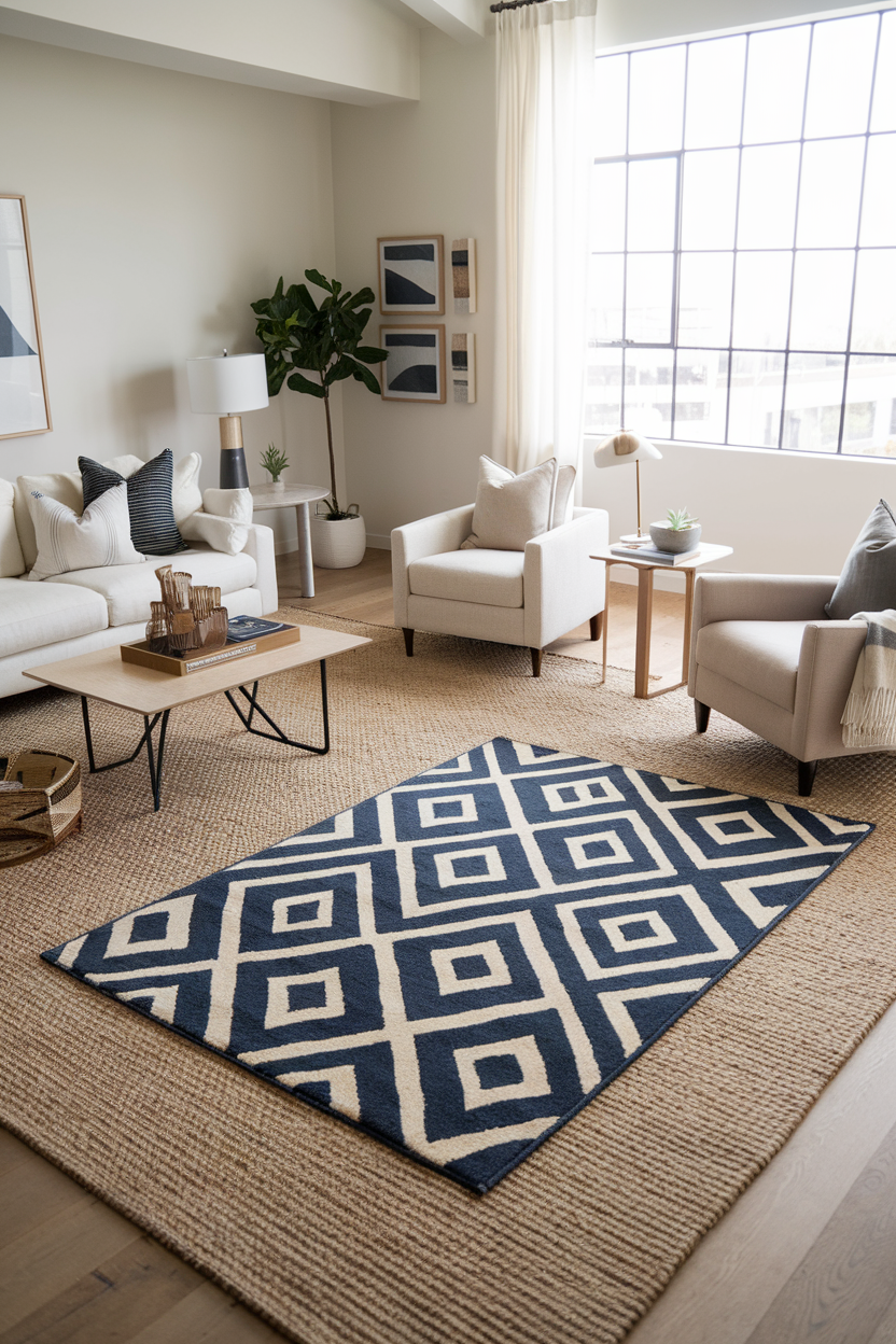 Layering rugs can completely transform the floor space in your living room and add a high-end, editorial feel. Start with a large, neutral base rug like jute or sisal to ground the space. Then, top it with a smaller rug that adds color, pattern, or plush texture. Persian, kilim, or faux fur rugs are great choices. This layered approach creates visual depth, offers more dimension, and allows you to mix patterns and tones without overwhelming the space. It also helps delineate areas in an open-plan living space, especially when combined with distinct furniture groupings.